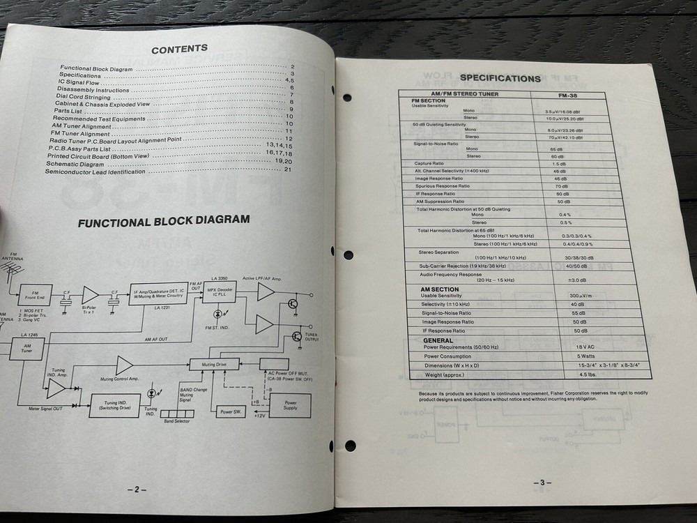 Vintage Fisher FM-38 AM/FM Stereo Tuner Service Manual with OEM Repair Diagrams