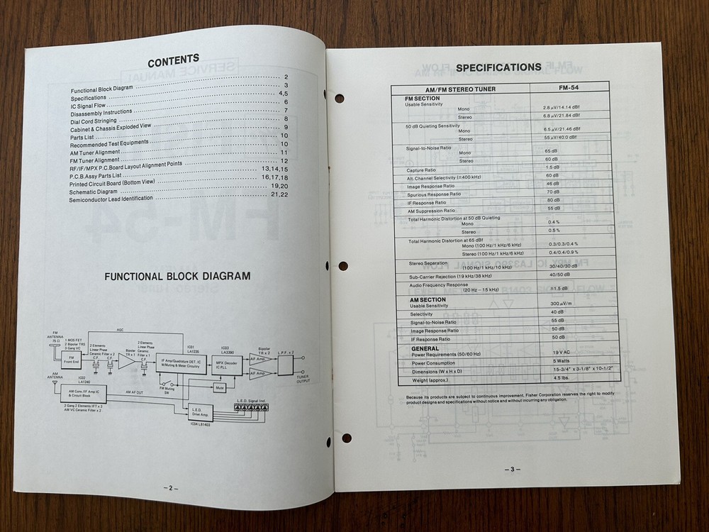 Vintage Fisher FM-54 AM/FM Stereo Tuner Service Manual OEM