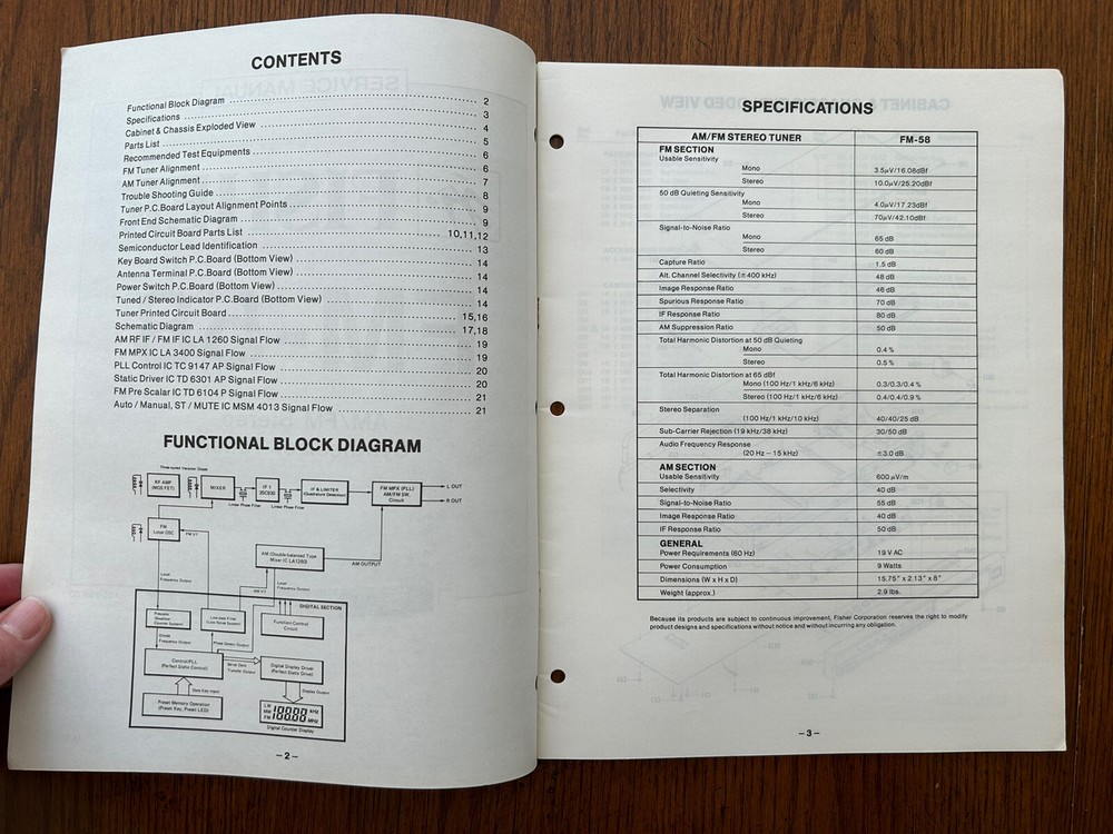Fisher FM-58 Vintage Stereo Tuner Synthesizer Service Manual OEM