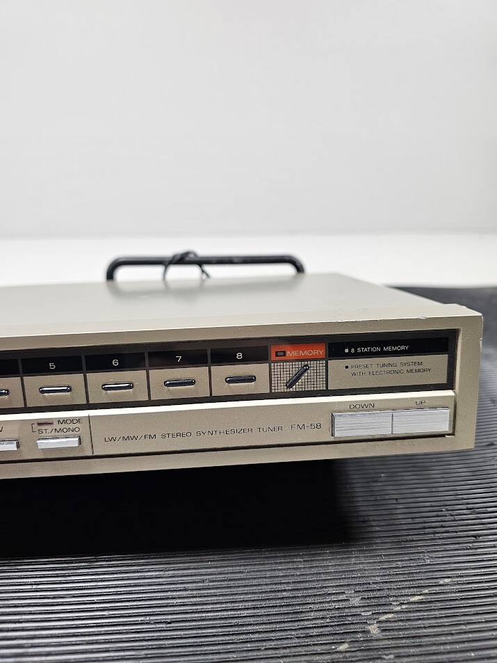 The Fisher FM-58 is a fantastic vintage tuner that delivers crisp, clear sound with a nostalgic touch. The 8-station memory and electronic tuning make it easy to use, and despite some minor wear, it works perfectly. A great addition for any audiophile looking to blend classic style with reliable performance!