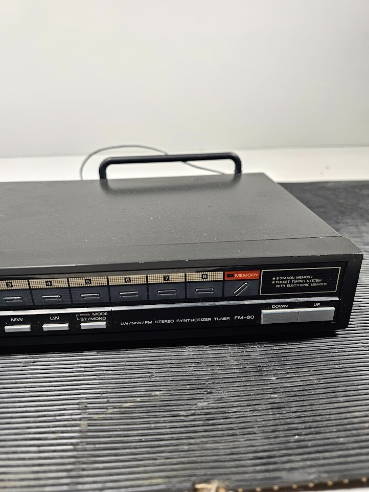 The Fisher FM-60 is a vintage stereo synthesizer tuner known for its reliable performance and classic design. Featuring LW/MW/FM tuning capabilities, it delivers clear and precise audio, making it ideal for enthusiasts of analog audio. Its user-friendly interface and sturdy construction reflect the quality associated with vintage audio equipment, providing a nostalgic experience for those looking to revisit or preserve their radio listening habits. This unit is in used but fully working condition and comes with a power cable. Please note that it does not include the original packaging. There are minor cosmetic signs of wear consistent with regular use, but these do not affect the tuner's performance. Whether you're a collector or someone looking to relive memories captured on the airwaves, the Fisher FM-60 offers dependable functionality in a vintage package. All items will usually be shipped within 3 business days of receiving cleared payment (excludes weekends and holidays). If you have some questions, feel free to ask and if you are not satisfied with your purchase before opening a case on Ebay, please contact us and we will try to resolve your issues as quickly as possible. Multiple items on one of the listings? If you see that we have multiple quantities of the same item in a photo, please note that it is representative of what you will receive. There may be slight variations in condition between the pictured item and the one you receive. For example, the scratches and dents may differ. Return Notes: 1. For items listed as "working" condition: Returns due to "changed mind," "doesn't fit," or other buyers remorse reasons are accepted, the seller is responsible for return shipping costs. 2. For items received damaged or not as described: If the item arrives damaged or does not match the listing description, we will cover the return shipping costs. Supporting photos or video evidence must be provided before the return is approved. Please contact us immediately with the details and your order number to resolve the issue efficiently. 3. For items listed as "For parts or not working": Returns are not accepted, as these items are explicitly described as non-functional or for repair purposes only. Buyers acknowledge this condition at the time of purchase. 4. General return guidelines: Items must be returned in the same condition as received, including all original packaging and accessories (if applicable). Returns must be initiated through the eBay Returns Center and include a valid return reason. For corporate or small business customers: If you require an invoice for your purchase, please specify this in the buyer's notes section or reach out to us.
