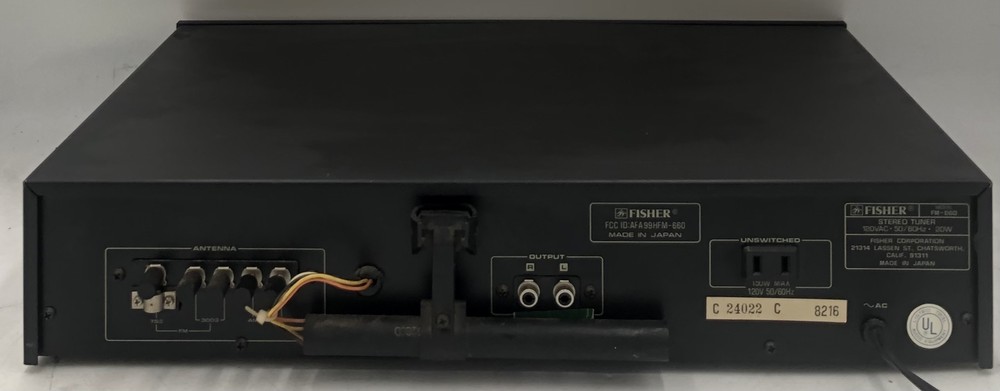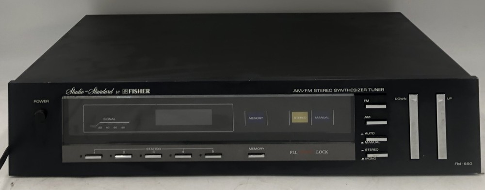 Condition Note: Used Fisher AM/FM Stereo Synthesizer Tuner Model: FM-660 Memory Presets: 5 Stations Outputs: 1- RCA AC: 120VAC, 50/60Hz, 20W Stereo Synthesizer Tuner Only- No Additional Cables, Accessories, Remotes, or Software Included.