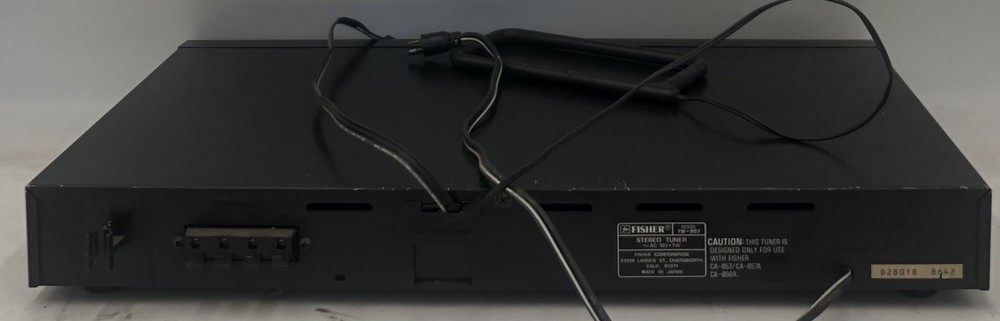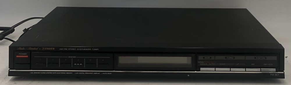 Condition Note: Used Fisher AM/FM Stereo Synthesizer Tuner Model: FM-857 Memory Presets: 24 Stations (18-FM; 6-AM) LCD Digital Frequency Display Power Output: AC 16V, 7W Synthesizer Tuner Only- No Additional Cables, Accessories, Remotes, or Software Included.