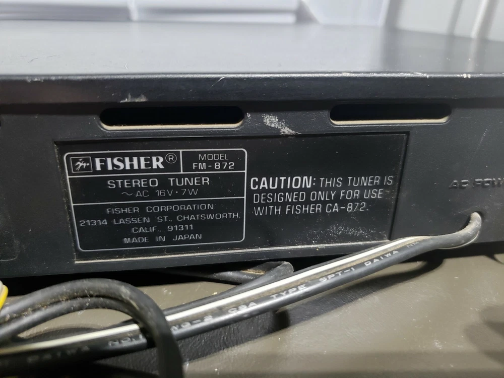 Fisher FM-872- Stereo Tuner, Japan, selling as is, not tested due to no power supply ( requires some 16V 2W power supply) Please see pictures for its condition, you will get the pictured item