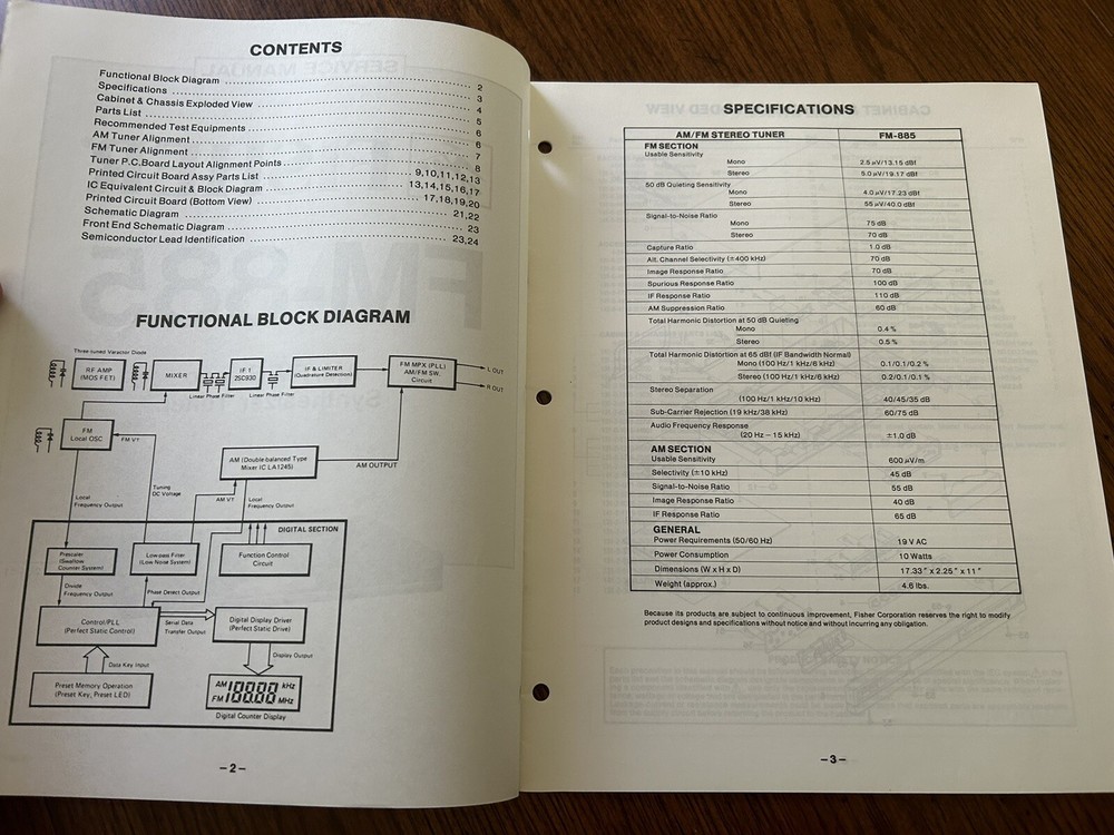 Fisher FM-885 AM/FM Stereo Tuner Service Manual with OEM Diagrams