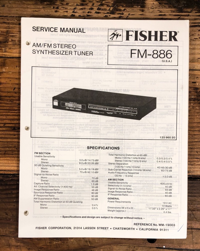 Fisher FM-886 Tuner Service Manual Original Factory Guide