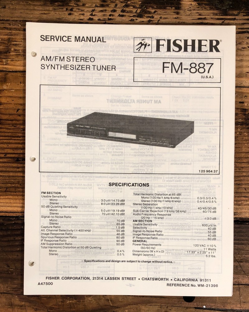 Fisher FM-887 Tuner Service Manual - Original Factory Guide