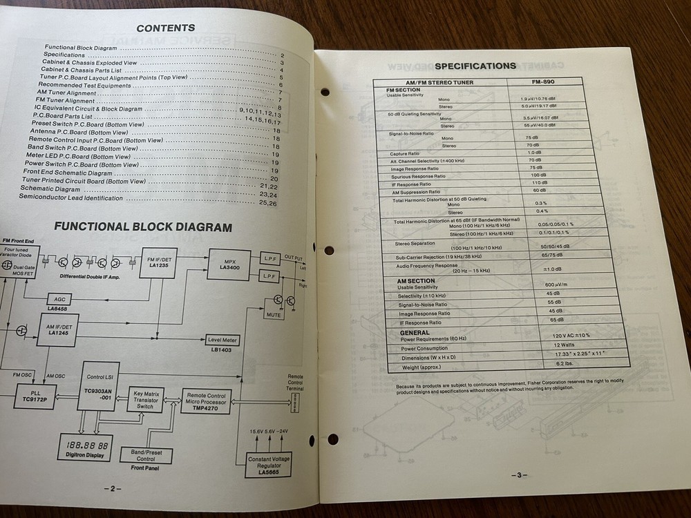 Vintage Fisher FM-890 AM/FM Stereo Synthesizer Tuner Full Service Manual with Diagrams