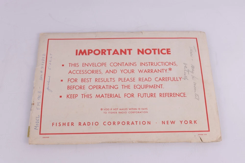 Fisher FM-90-B FM-Multiplex Tuner Operating Instructions and Warranty. Nice to have to go with your tuner. Original, not reproduction. Shows only light general wear. Buyer pays $5 shipping in CONUS....