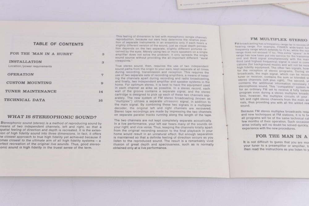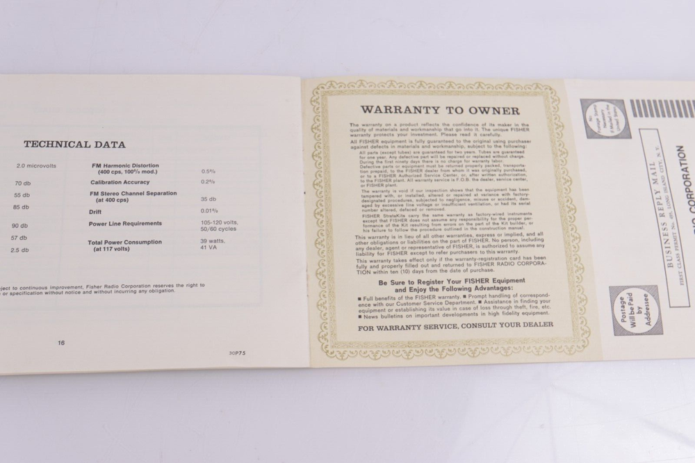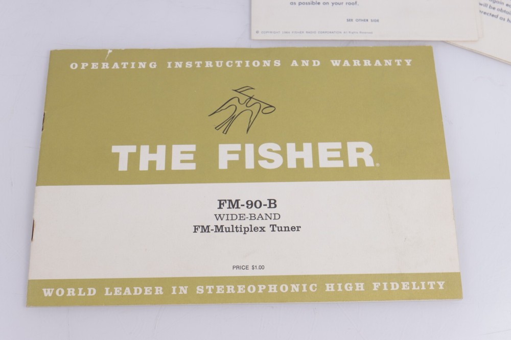 Fisher FM-90-B FM-Multiplex Tuner Operating Instructions and Warranty. Nice to have to go with your tuner. Original, not reproduction. Shows only light general wear. Buyer pays $5 shipping in CONUS.