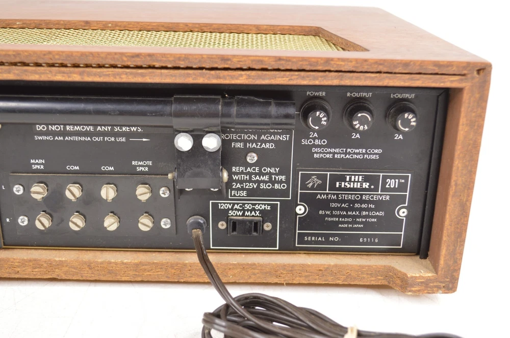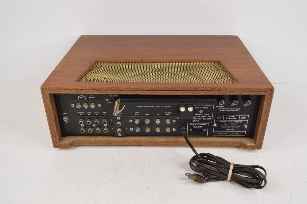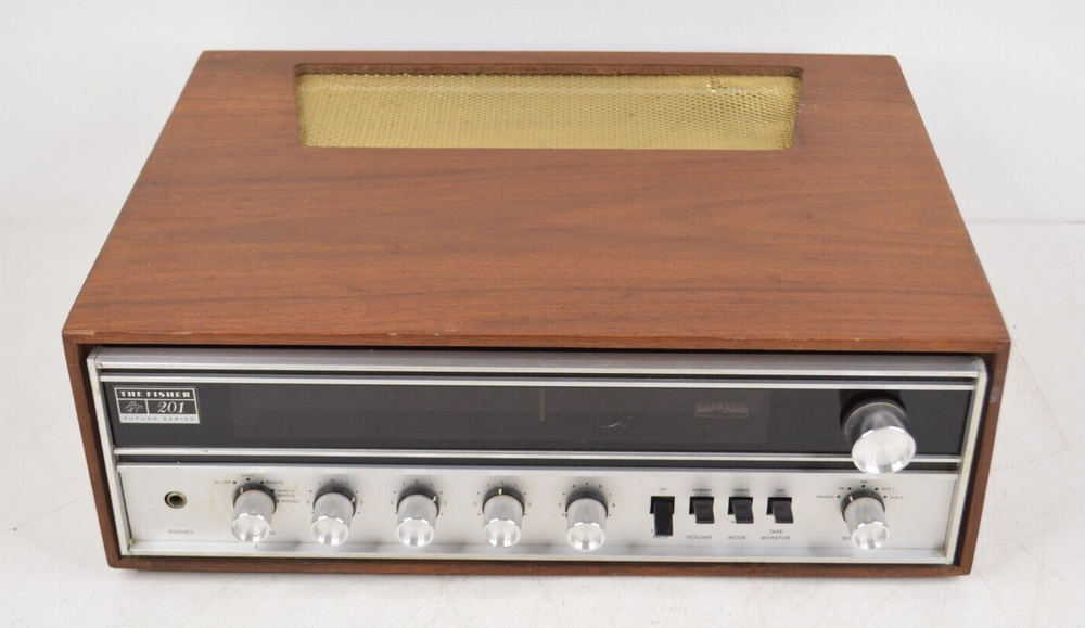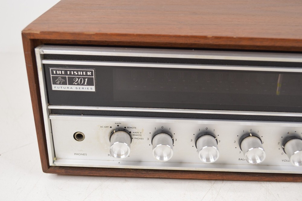 This Fisher 201 is in working condition as seen in the video. However, it does have some issues. The wiring going into the AC plug is exposed a bit. The loudness switch is broken and has to be in the perfect position to play correctly and will need repaired or replaced. The right speaker channel doesn't seem to work and the power switch has been bumped in the past. It's crooked and the knob is cracked on the inside. It still works however. And lastly, there's a few lights out on the display. With a little work, this will be an excellent unit and it has the rare wooden cabinet. There's no screws on the bottom holding the unit in though so take care when moving it. LOC: FL Please look at all pictures and ask as many questions as you need before buying. Buy with confidence! I ship items out daily (including Saturdays) and always pack items securely.