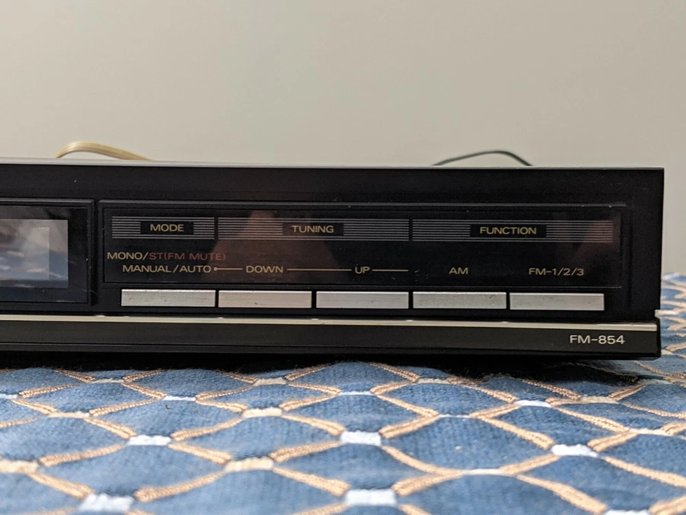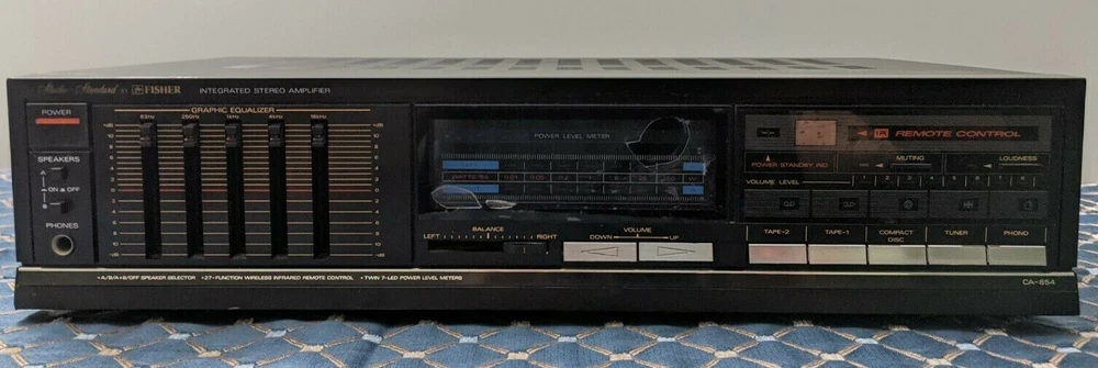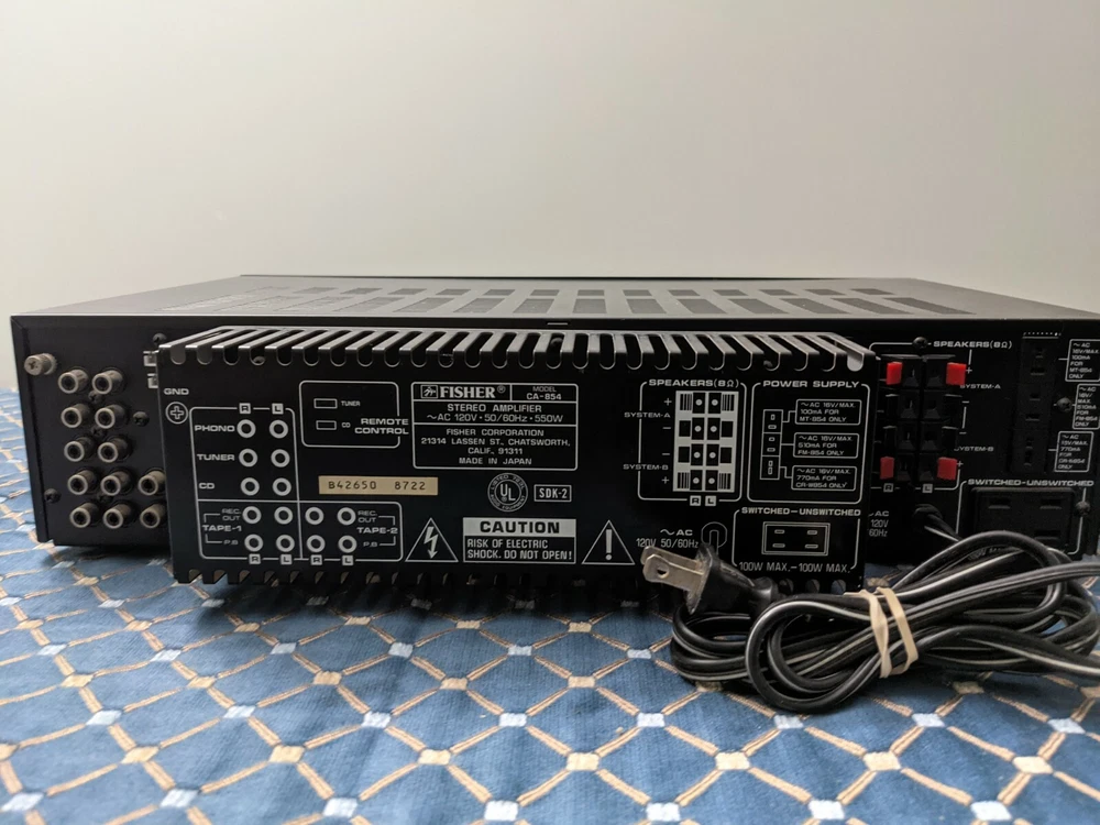 Fisher Integrated Amp CA-854 Retro Audio/w Fisher Stereo Tuner FM-854 as you can see in the pictures amplifiers as a small Brocken piece in the front tuner as small dent but from the front you can't tell is there really nice items, amp is powerful