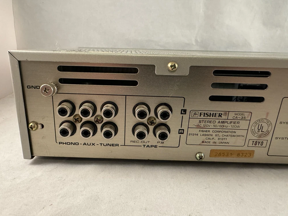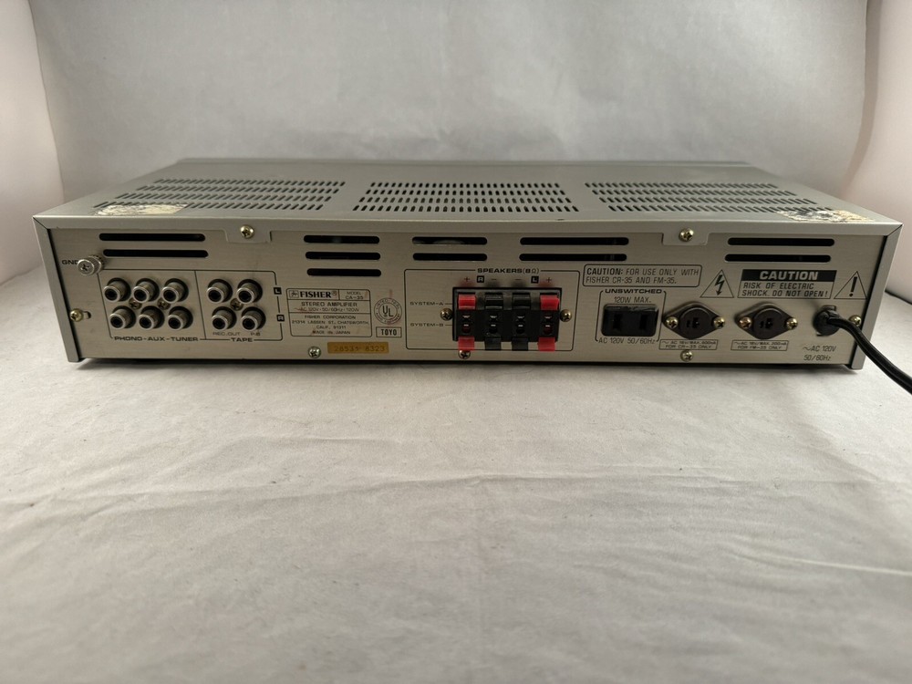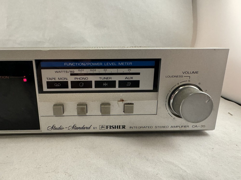 This is a very nice vintage Fisher integrated stereo amplifier model CA-35. It powers on but I have not tested it otherwise. It is in very nice structural condition without any major dings or dents or scratches. All of the knobs and dials move and click into place and the buttons all appear to work. Please be sure to check out my store to see my other items for sale! All items are bought by me from retail stores, discount stores, thrift stores or yard/tag/garage sales or via another similar personal method such as craigslist. I am not the original owner. All items are sold as is. I will make every effort to describe and photograph each item to the best of my ability, but if you have any questions please don't hesitate to ask me. I am not an expert on this item and can only advise what I see. I will make minor efforts to clean and test each item unless specifically noted otherwise. I will ship within one business day unless noted otherwise. I will generally ship economy, although if you want something sooner than the estimate shown on the shipping page please let me know and I can always ship priority or express or any other means. If you want other shipping please wait for an invoice from me as the additional shipping speed may have extra costs for you. If you are interested in multiple items from my store I am always willing to combine shipping to pass the savings onto you. In those cases please wait for an invoice from me before paying and please let me know you are looking to buy other items. Please note I am passing along the shipping cost directly to you and if the shipping cost seems too high to you it may be that the item is very large or heavy, in which case the shipping costs are going to be greater. I will offer 30 day returns but as stated above each item is sold as is to the best of my knowledge and description. I generally do not have other similar items or separate copies of the item unless noted specifically. Please note I do not personally ship outside the USA. Any international shipping is through the eBay global shipping center and will involve additional costs to you. I will not accept international returns. Thank you for your interest in my item.