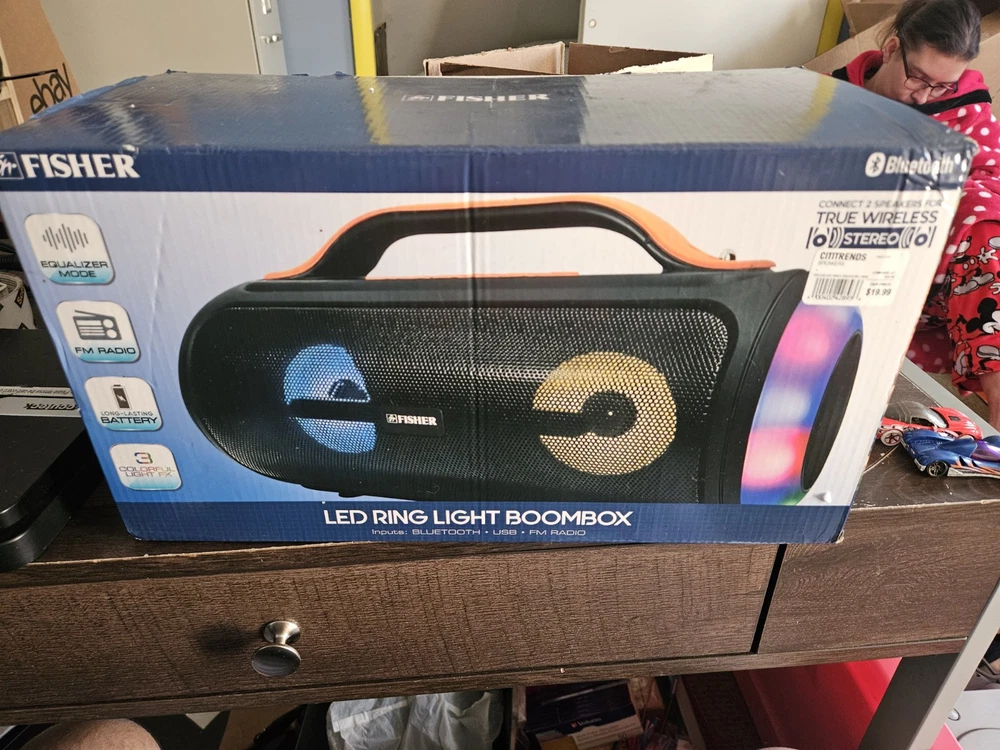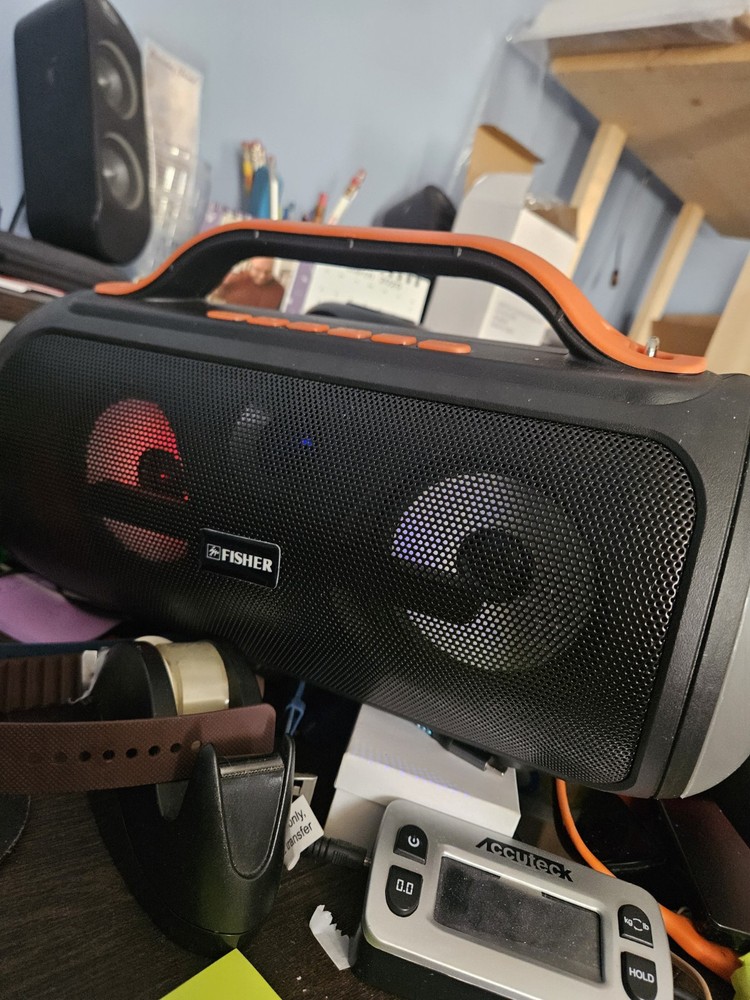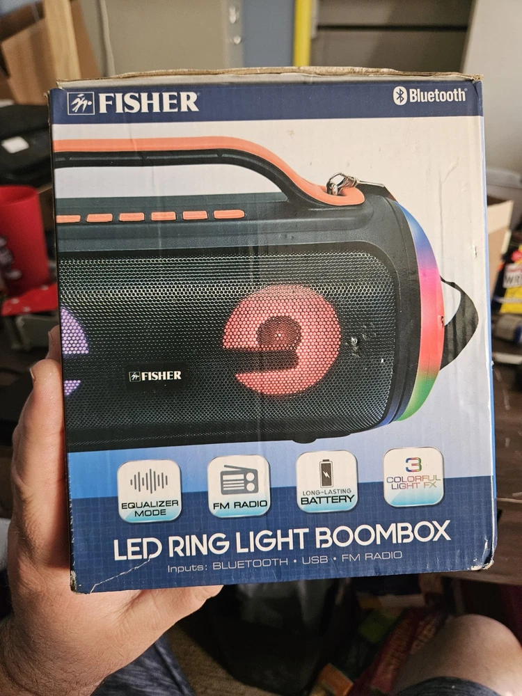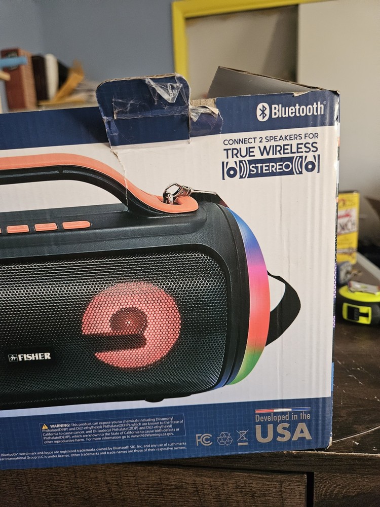 This would be good for a elderly person that's not into bass or a young kid who wants music in they room or portable. If you just want back ground noise it'll be good for that. Not very loud. Introducing the Fisher LED Bluetooth Boombox, a powerful and portable audio device that offers exceptional sound quality and convenience. This boombox is equipped with a Bluetooth-enabled amplifier that allows you to play your favorite tunes wirelessly from your smartphone or tablet. Enjoy the clear and crisp sound of the Fisher boombox, whether you're hosting a party or relaxing at home. This boombox is designed by Fisher, a trusted brand in the audio industry, and comes in a sleek and modern model that is perfect for today's lifestyle. With its versatile features, including Bluetooth connectivity and an amplifier, this boombox is a must-have for music lovers who crave the ultimate sound experience.