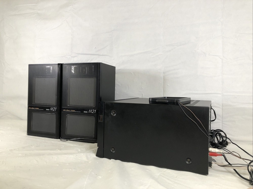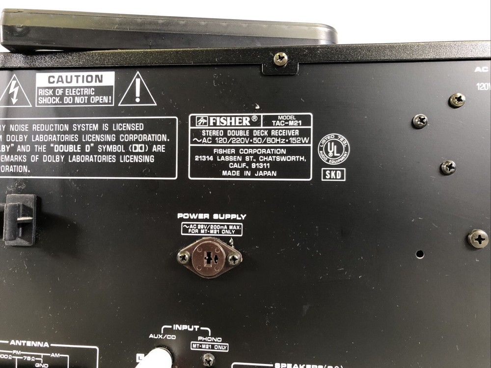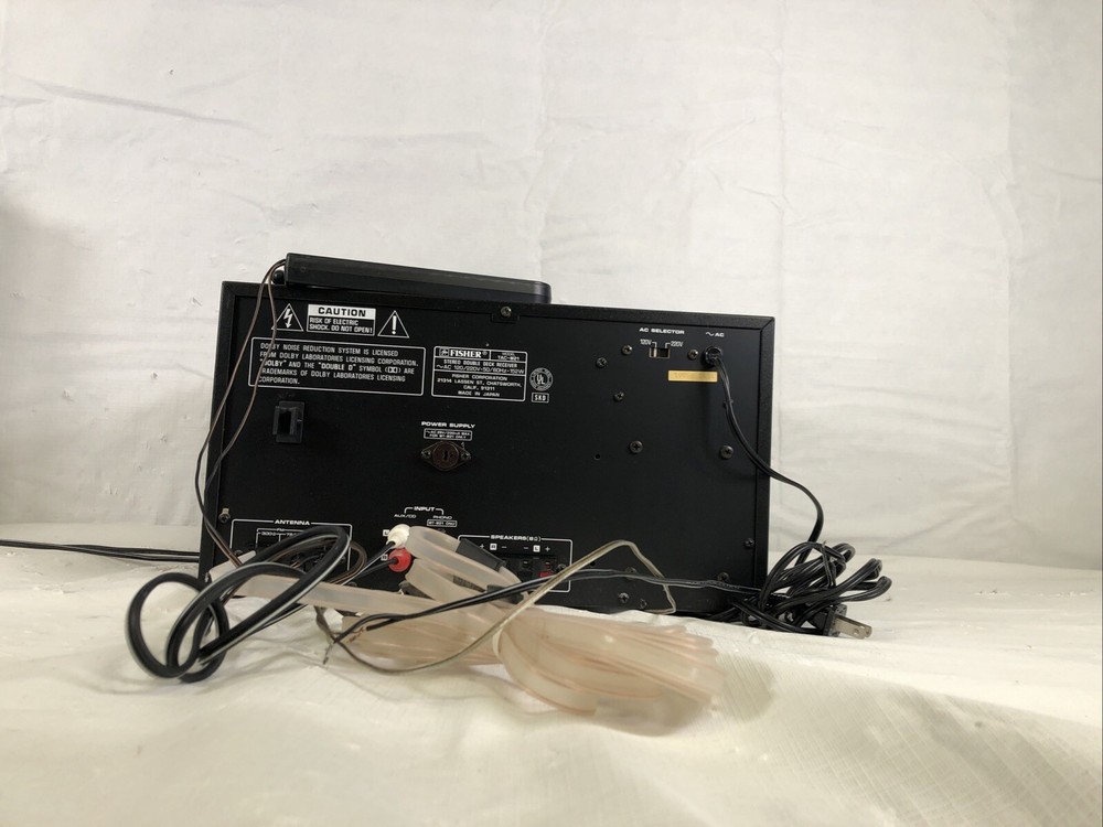 Experience high-quality sound with this Fisher M21 stereo double deck receiver and M21 speaker set combo. The black color and sleek design make it a perfect addition to any home audio setup. This record player features cassette tape, Hi-Fi, belt drive, and amplifier capabilities, making it perfect for any music lover. The audio outputs include banana speaker jacks, ensuring a high-quality sound experience. This Fisher M21 model is a reliable and durable option for anyone looking for a home audio component. Whether you're a seasoned music listener or just starting out, this record player is sure to impress.