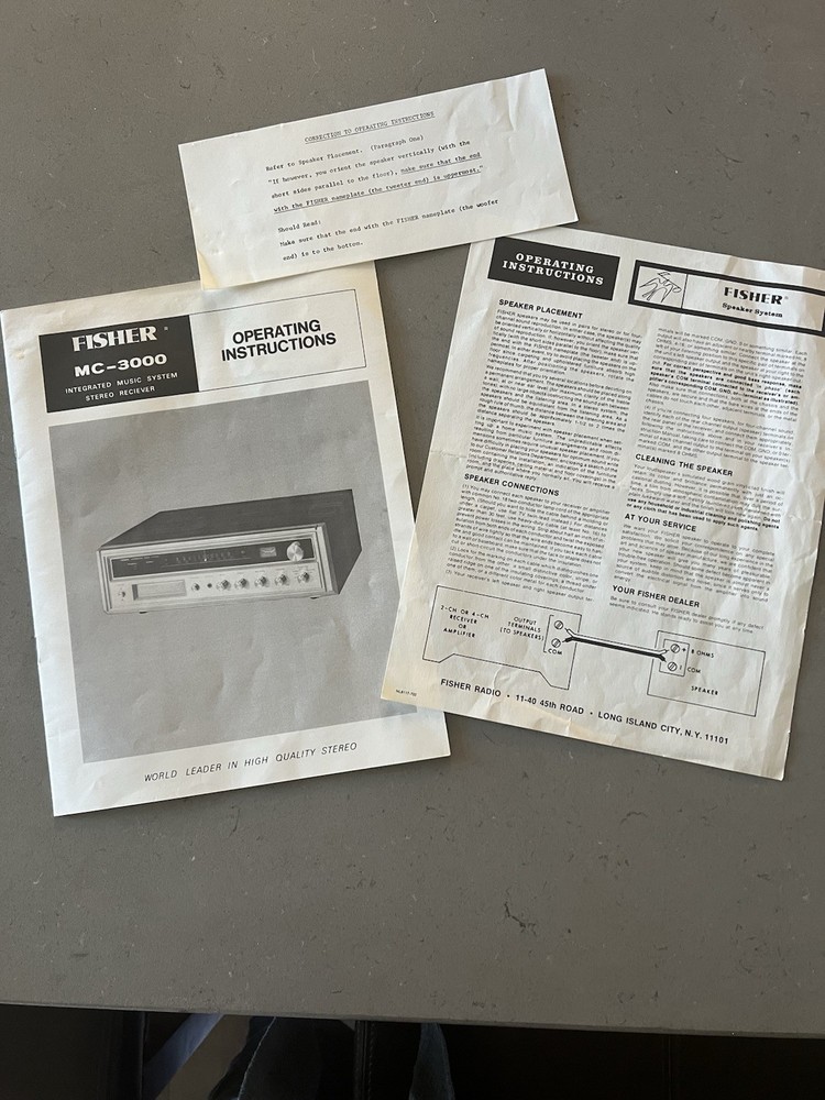 FISHER MC-3000 integrated music system stereo receiver Operating Instructions. ORIGINAL, not a copy