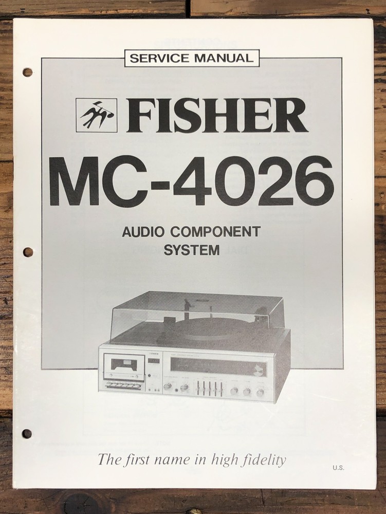 Fisher MC-4026 Stereo Service Manual *Original* Feature Details Type of Document: Service Manual Condition: Used:Good Original Manual / Copy: Original Shipping: We ship worldwide using waterproof mailers and cardboard backing. Yes, we combine shipping. Please contact us for rates. Important: This is an ORIGINAL PHYSICAL DOCUMENT , not a photocopy, reprint, or digital version. There may be some wear & tear since most of these are decades old. Tech's notes are occasionally written inside the manual; they often include helpful hints, tips, or prices.