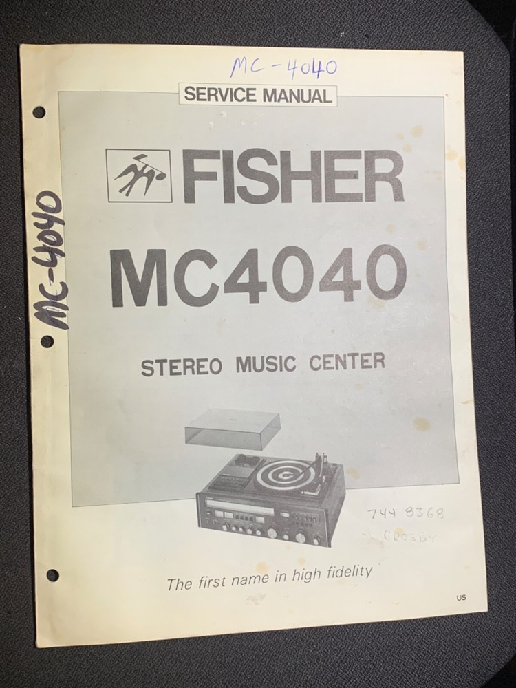I am selling a Fisher MC-4040 Service Manual Stereo Music Center Original...... Item was used at a repair center .. Item will be shipped USPS First Class or Media Mail..