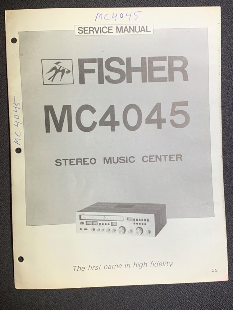 I am selling a Fisher MC-4045 Service Manual Stereo Music Center Original.. Item was used at a repair center .. Item will be shipped USPS First Class or Media Mail..