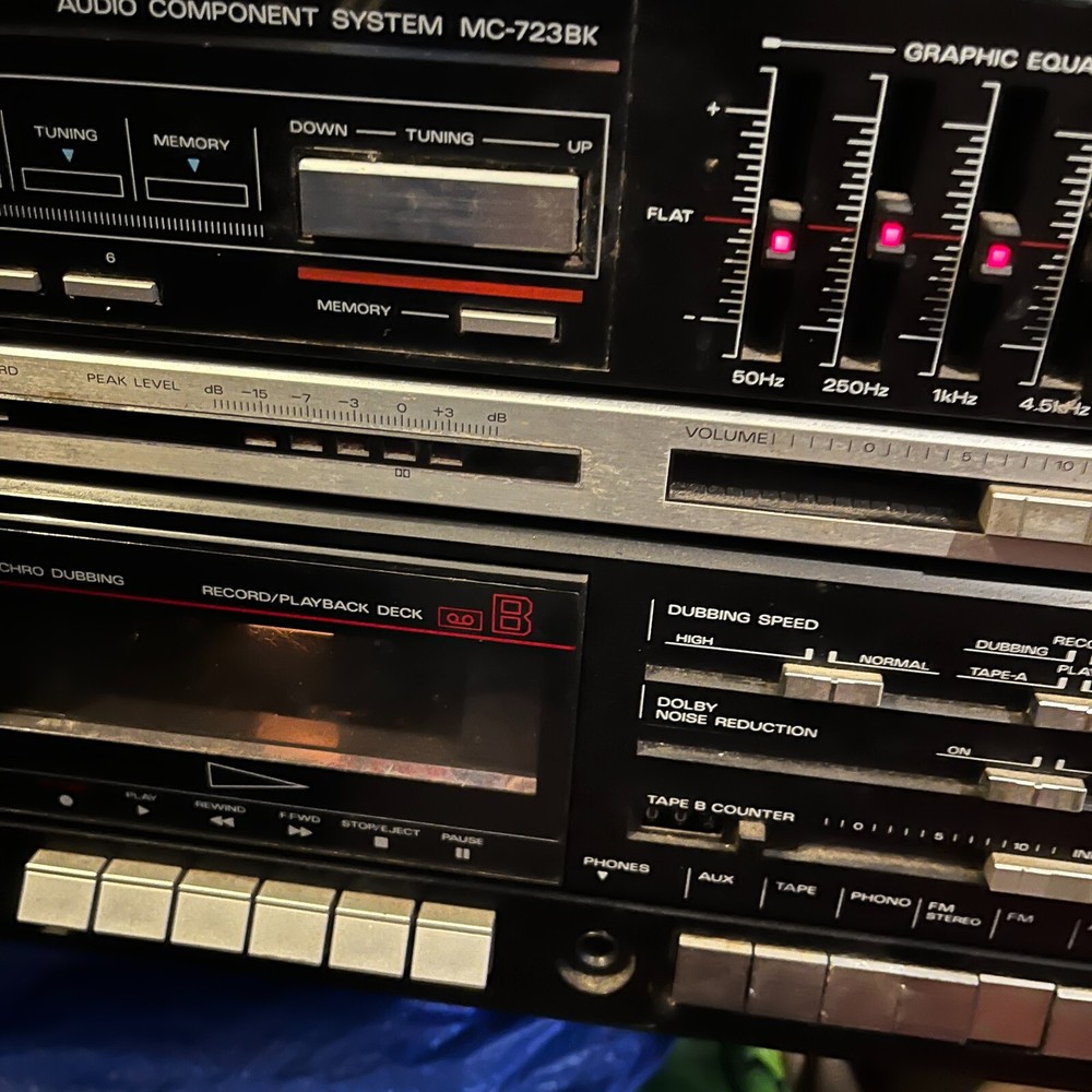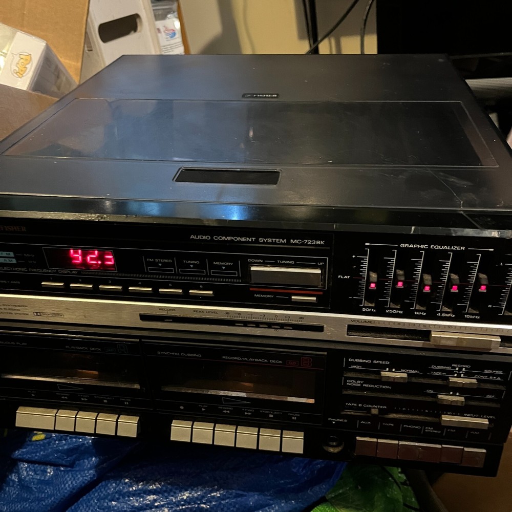 Pre Owned Fisher MC-723 BK AM/FM Stereo Turntable Dual Cassette Record Player Tested Works Tested Tape Record Radio Works The Source Buttons Are Slightly Low Please Check Photos for Condition This Fisher MC-723BK AM/FM Stereo Turntable Dual Cassette Record Player is a vintage gem that has been tested and works perfectly. With its elegant design and high-quality sound, it's a great addition to any music lover's collection. Made in Taiwan, this record player is a rare find and is sure to impress. Featuring dual cassette capabilities, this Fisher MC-723BK record player is perfect for those who want to listen to their old cassette tapes. The AM/FM stereo sound ensures that you can listen to your music with clarity and precision. This item is a must-have for any vintage audio and video enthusiast.