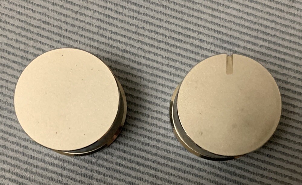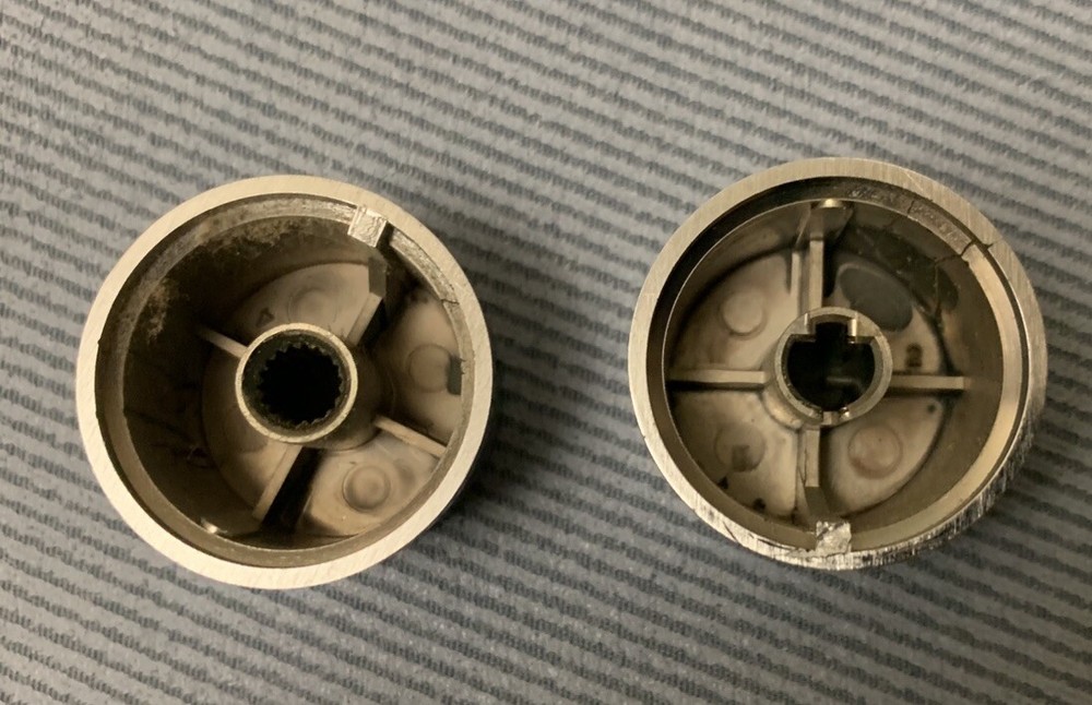 Set of 2 knobs Shows signs of wear, scratches, scuffs, etc. Please see all photos for actual condition. If you don't see it, it's NOT included.