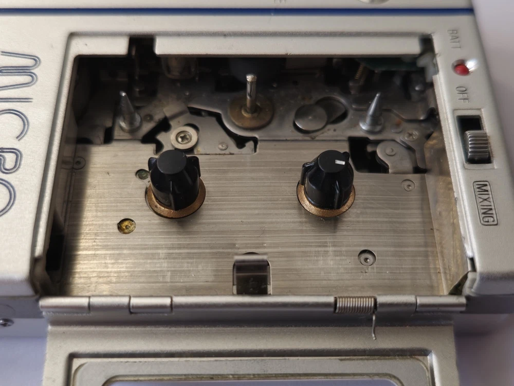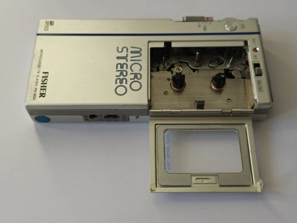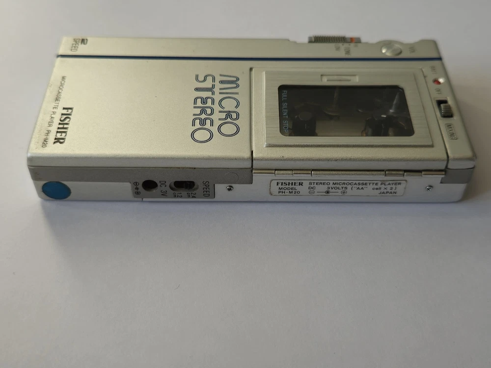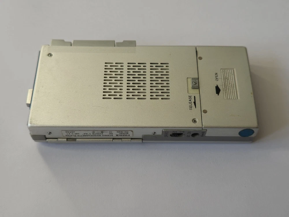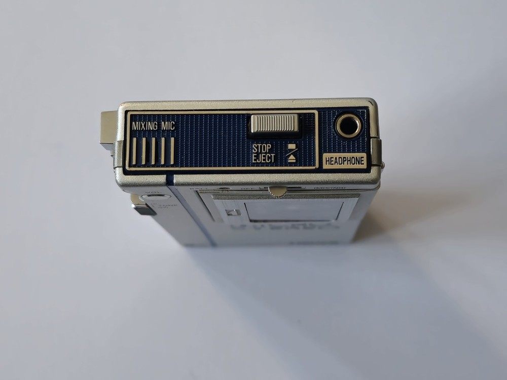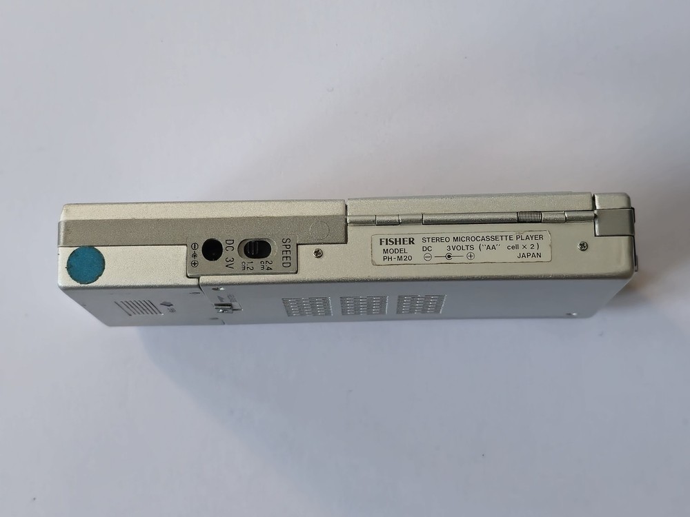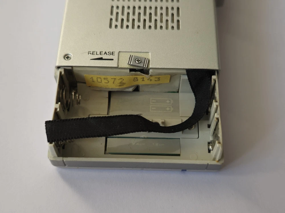 This vintage microcassette player is in great shape with only minor wear. The battery compartment is clean and all controls work smoothly. Perfect for restoration projects!