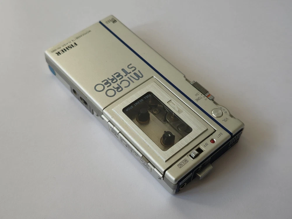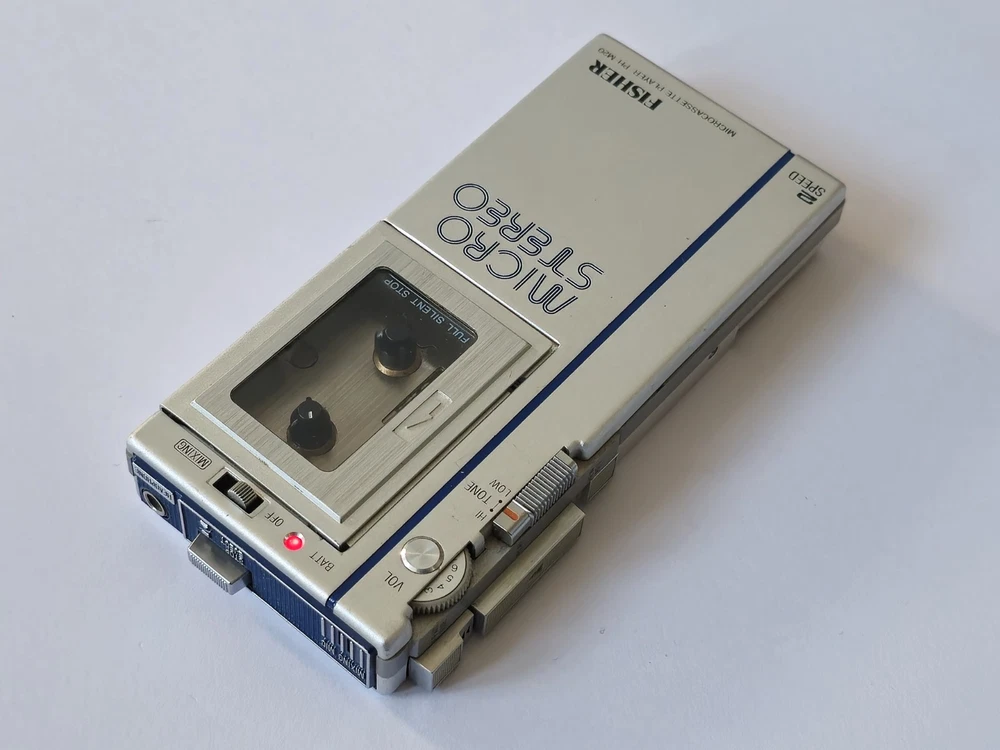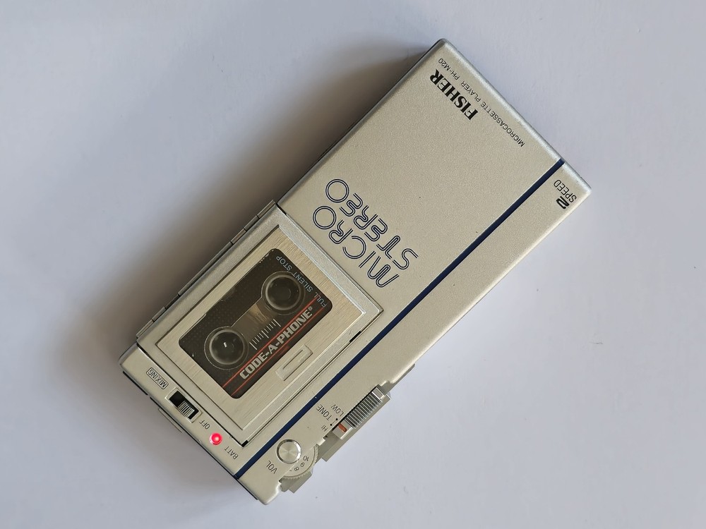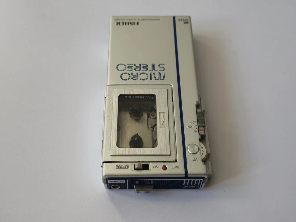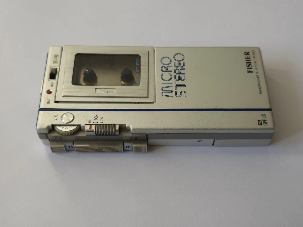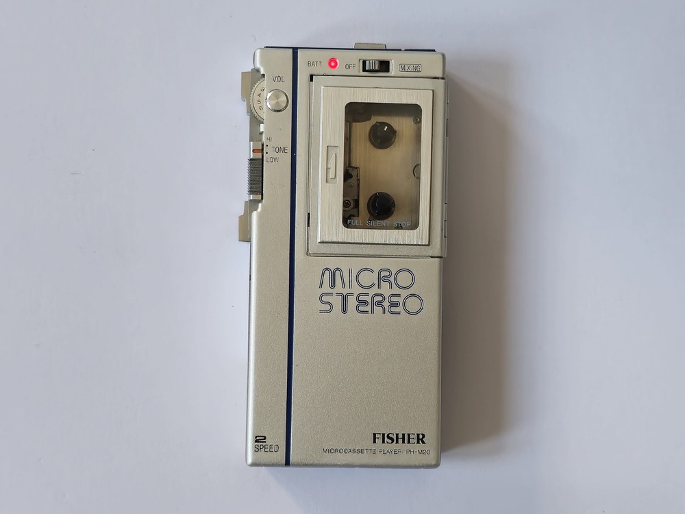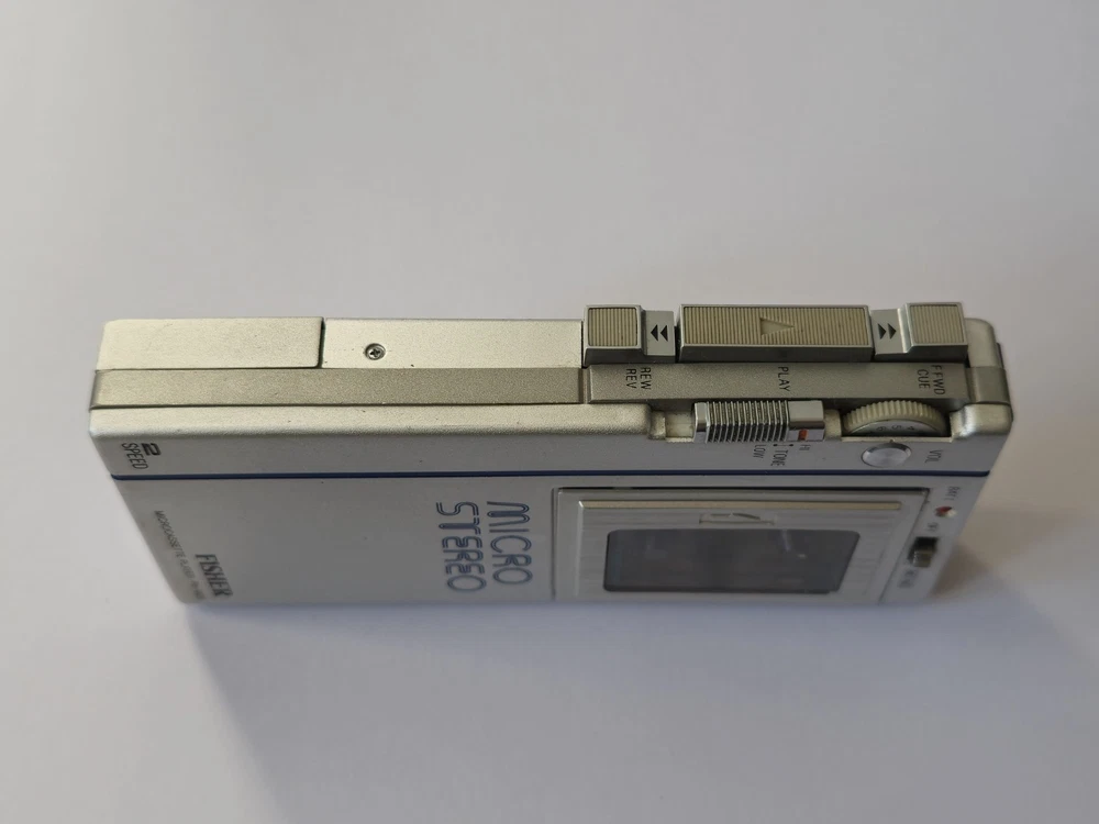 This vintage microcassette player is in great shape with only minor wear. The battery compartment is clean and all controls work smoothly. Perfect for restoration projects!