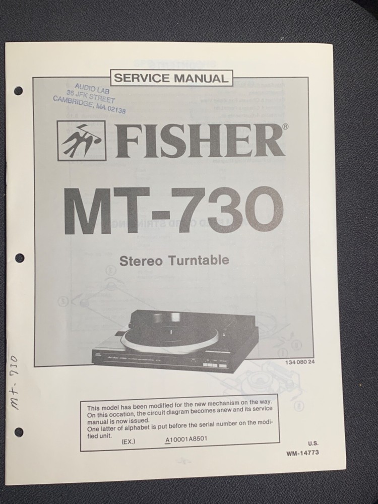 I am selling a Fisher MT-730 Service Manual Stereo Turntable Original.. .. Item was used at a repair center.. Item will be shipped USPS First Class or Media Mail.....