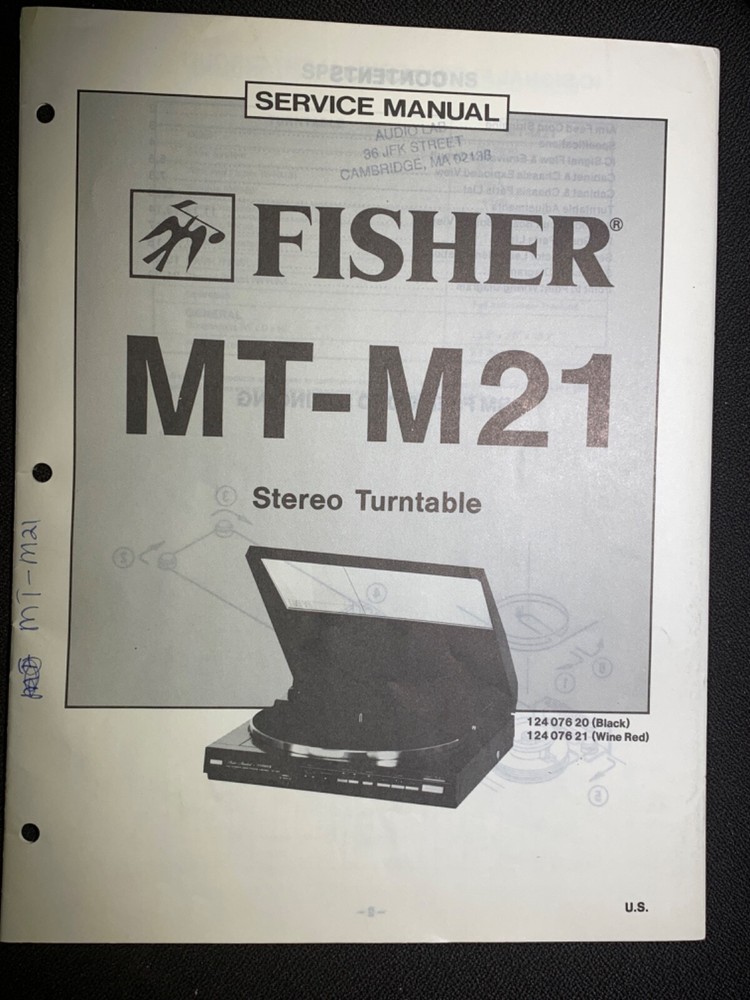 I am selling a Fisher MT-M21 Service Manual Stereo Turntable Original.. Item was used at a repair center .. Item will be shipped USPS First Class or Media Mail.....