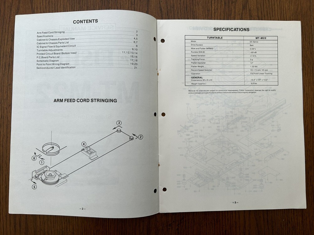 Fisher MT-M22 Vintage Stereo Turntable Service Manual OEM Repair Guide