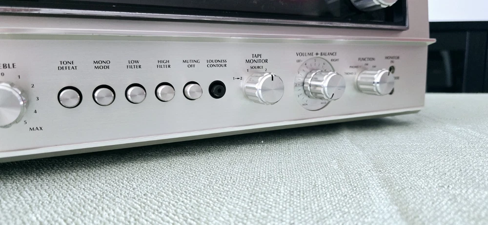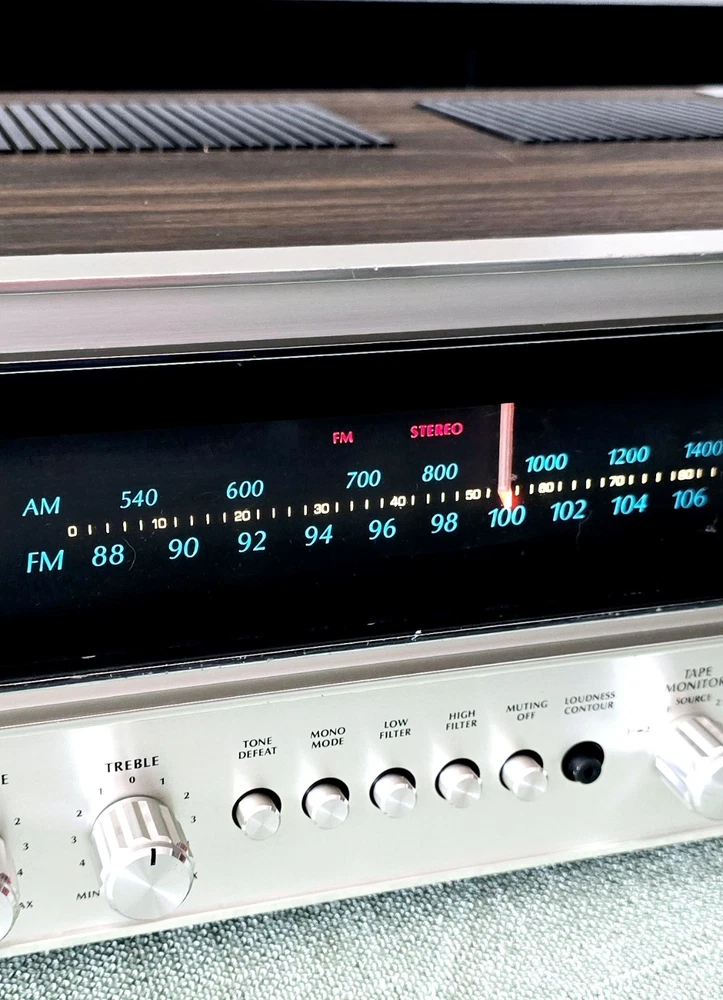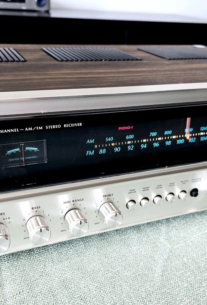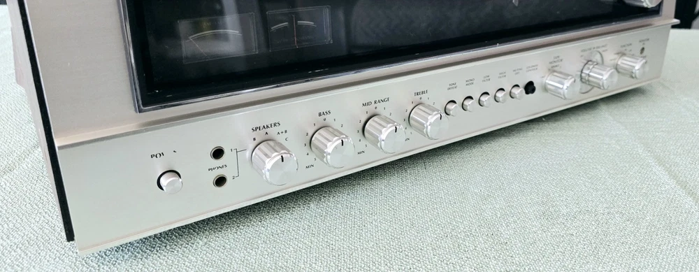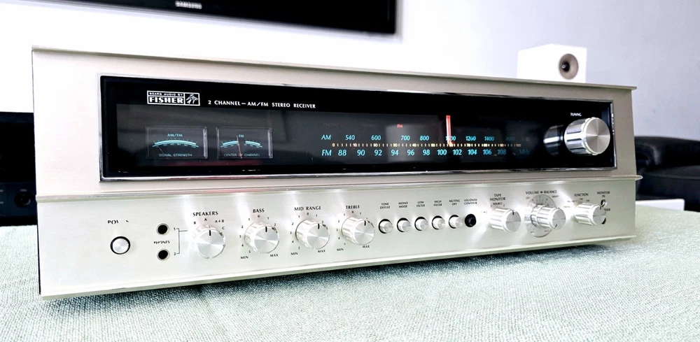 Vintage Fisher 143.92551600 Sliver Face 70's Stereo Receiver 22" Wide Made Japan. Condition is Used. Missing cover from loudness button could still be able to push in Small side veneer peeling Please look at pictures for condition Shipped with FedEx Ground
