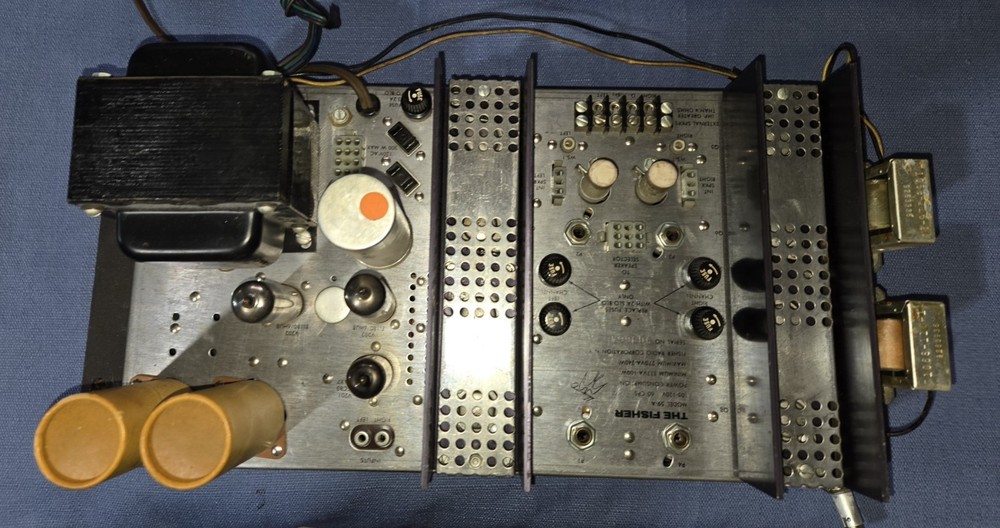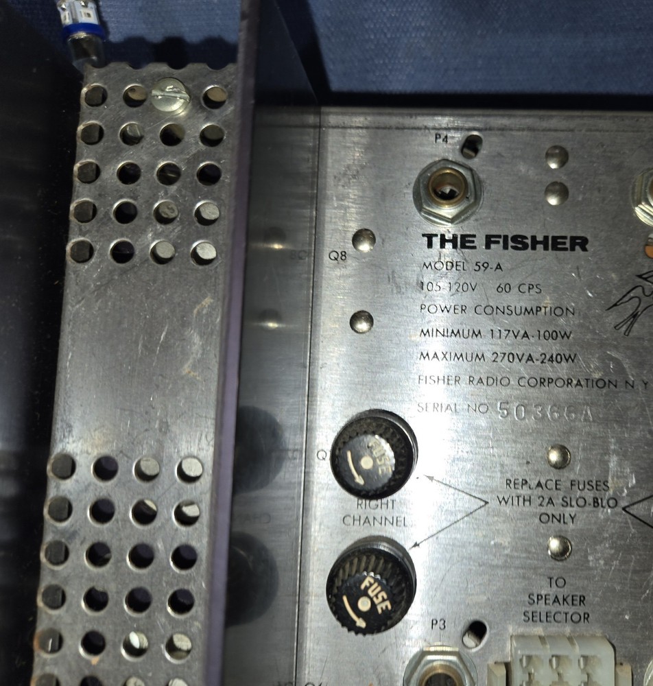 Here, we have an awesome representation of vintage Fisher electronics as we came into a transistor era. This is the 1964 model 59-a, which features both tube and transistor.... I guess you can call it a hybrid. The unit it is in great shape and was pulled from a working cabinet, but cabinet condition was not very good. Tubes will be packed separately to avoid ant breakage