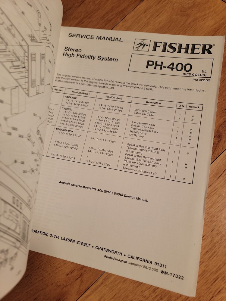 Fisher PH 400 Boombox Stereo Repair Service Manual Guide