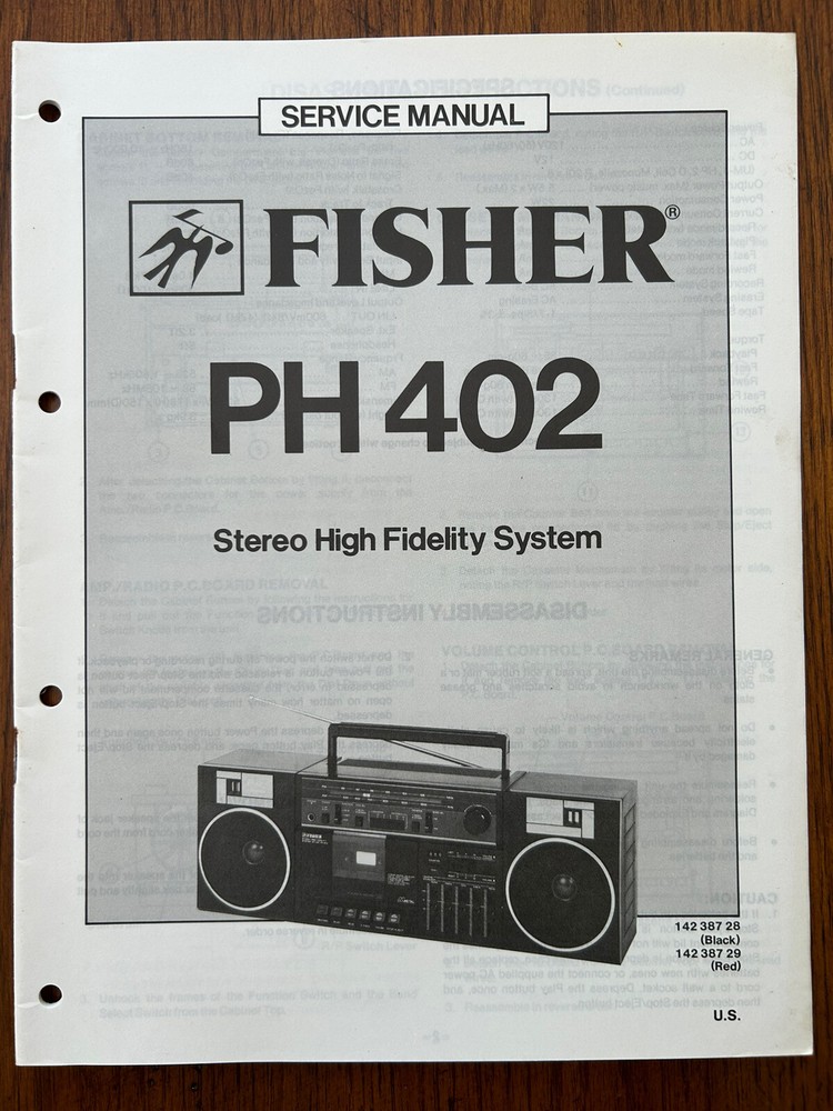 Fisher PH-402 Vintage Stereo Boombox Service Manual OEM High Fidelity System Repair Guide