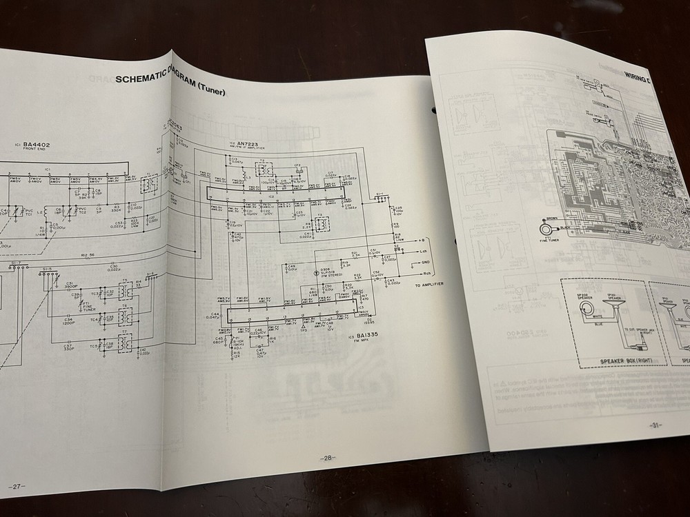 Two quadraphonic stereo receiver service manuals were as described, i.e., original, little used (if any), and in excellent condition. This seller has always consistently shipped quickly and economically. The manuals were packaged with cardboard backings to prevent folding, with all materials enclosed inside a sturdy vinyl bubble-wrap mailer to prevent wetness. Another super transaction!