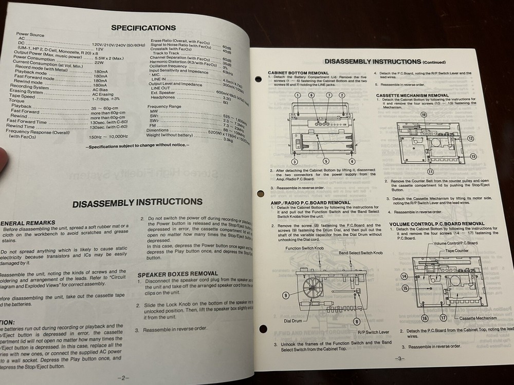 Vintage Fisher PH 405K Boombox Stereo System Service Manual with OEM Diagrams
