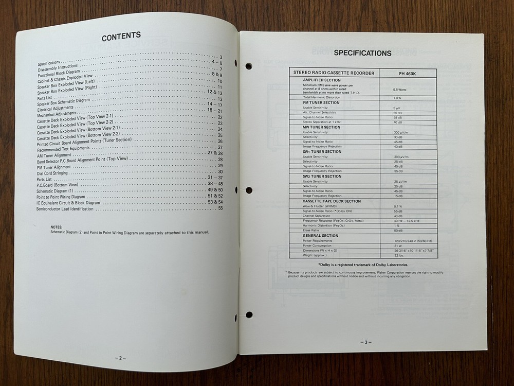 Fisher PH 460K Vintage Stereo Boombox Service Manual OEM Repair Guide