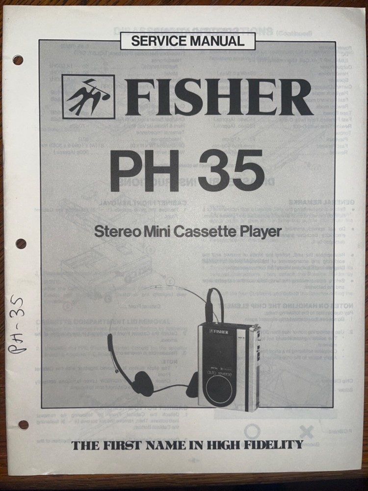 I am selling an Original Fisher PH35 Stereo MIni Cassette Player Service Manual.. Item was used at a repair center .. Item will be shipped USPS First Class or Media Mail..