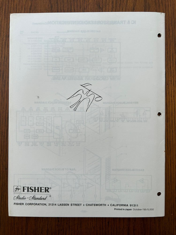Vintage Fisher PH-400 Stereo High Fidelity Boombox OEM Service Manual