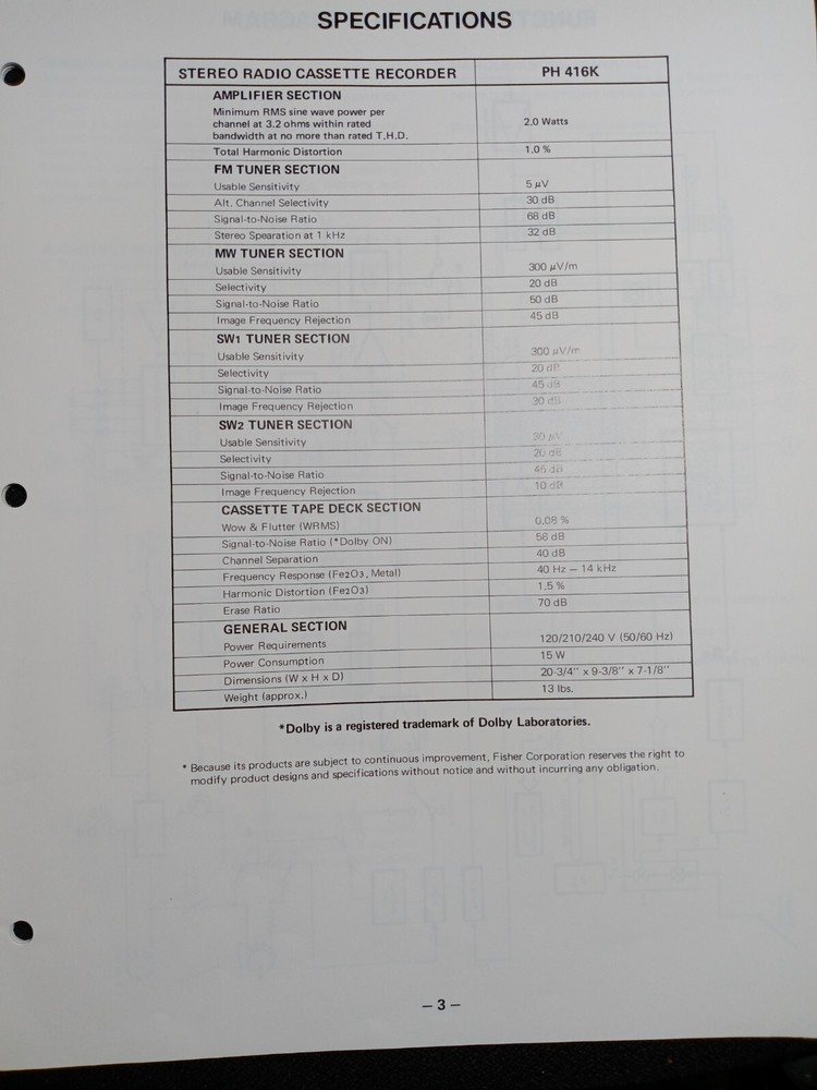 I am selling a Fisher PH-416K Service Manual Stereo High Fidelity System Original. Item was used at a repair center .. Item will be shipped USPS First Class or Media Mail.....