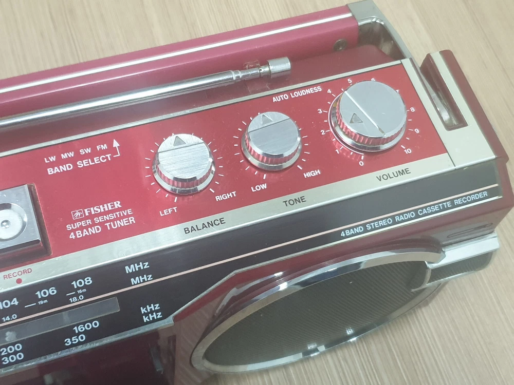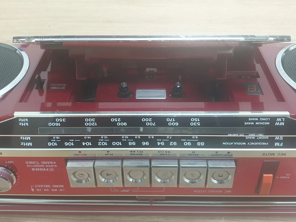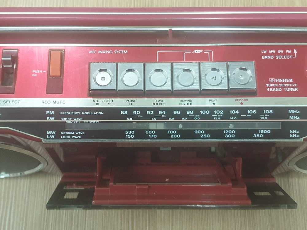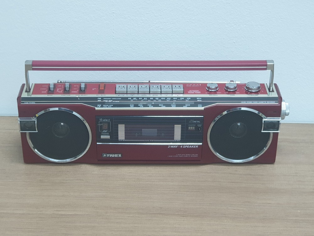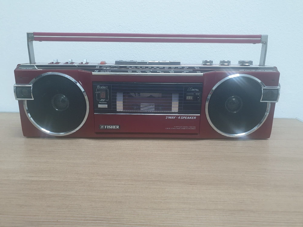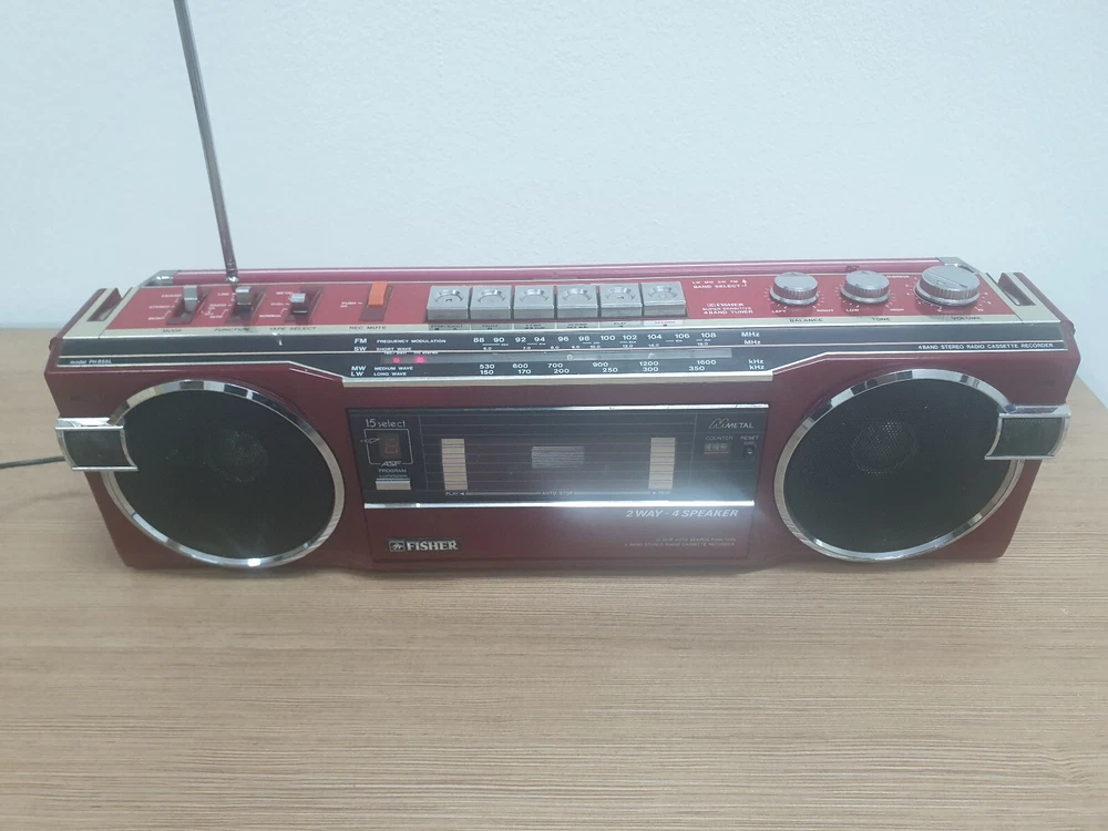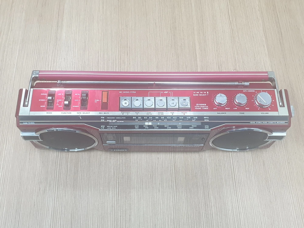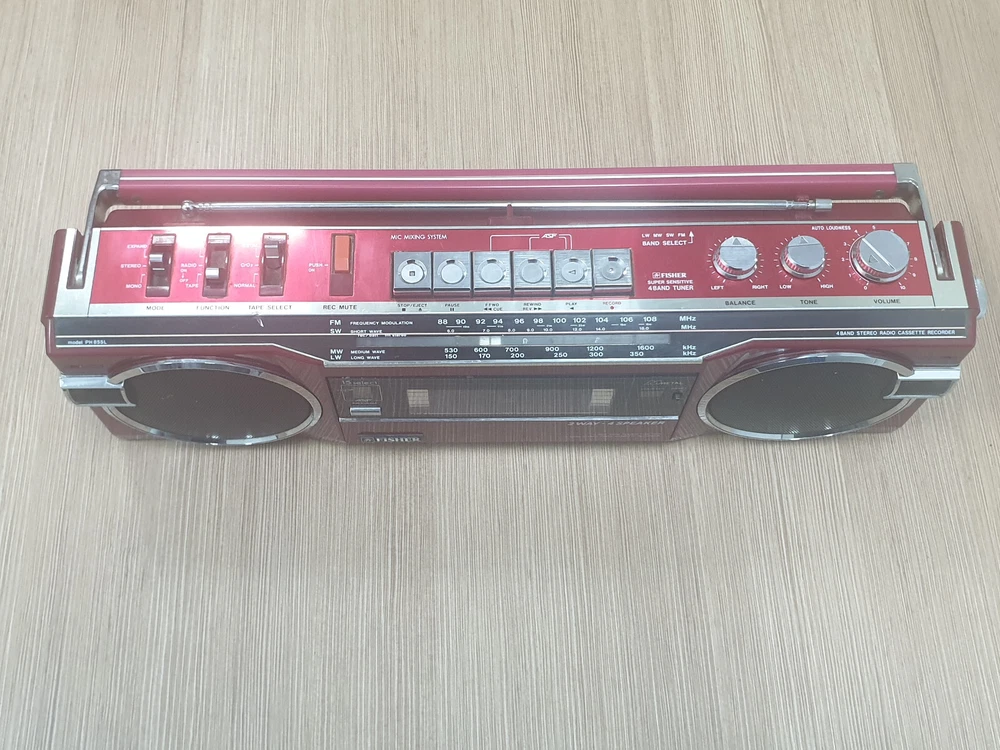 This vintage Fisher PH855L red boombox is a true retro gem! The bold color and chrome details make it a standout piece for collectors. While it needs restoration, the cosmetic condition is solid—just some minor wear and dust. Perfect for a DIY project or display. The battery compartment is clean, so it’s ready for a revival. A must-have for 80s nostalgia lovers!