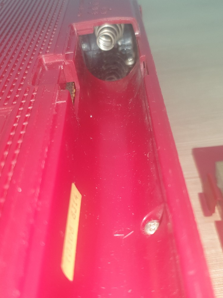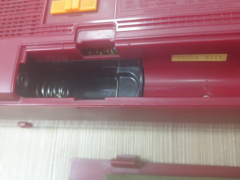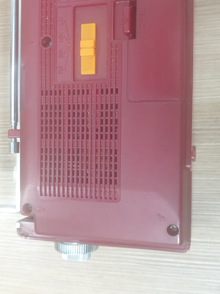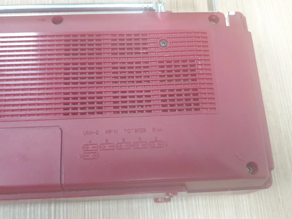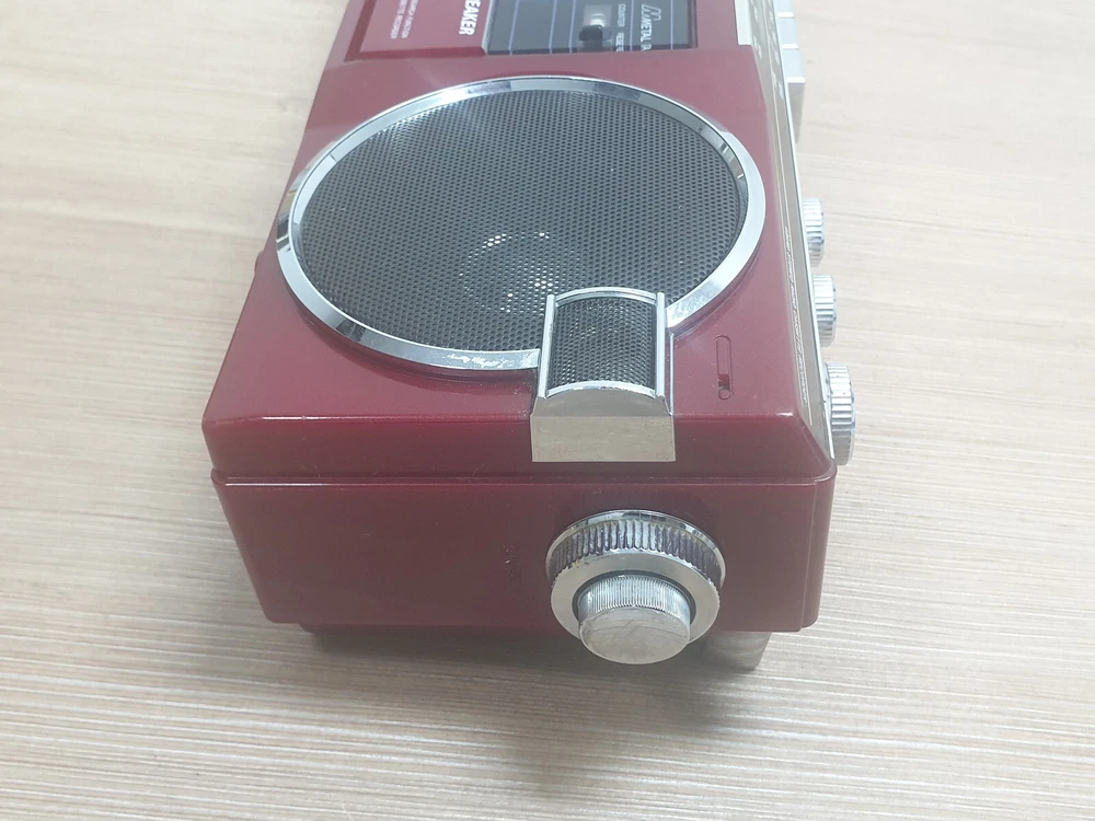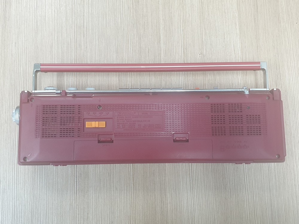 Collectable boombox in red color with a chrome accents. Unit will need professional restoration, because all its functions are not operational. Just a boombox is listed, no other accessories are included. Please look at photos and read complete description. Item is in good cosmetic condition.Unit has visible scuffs and scratches on the front side mainly and couple of punctiforme impressions on the top side metal panel.Small amount of dust is present.Battery compartment is clean, and unit will operate with them.Batteries are not included.Battery cover closes properly.Sponge will likely need replacement.Antenna is very good, bent gently.It opens and retracts as should.It can hold in most positions, not all.All switches and knobs are operating fine mechanically.Tape compartment opens softly and properly closes.Tuning is good and reception is proper.FM is tested only and unit tune to stations as should.Sound is good and switching options are functional.Volume regulation is good.Balance is working.Tape transport is not functional.Sound of a motor is heard once commands are issued.Recordings were not tested.Those are all testings performed with a unit.It is offered AS described for a complete professional restoration.