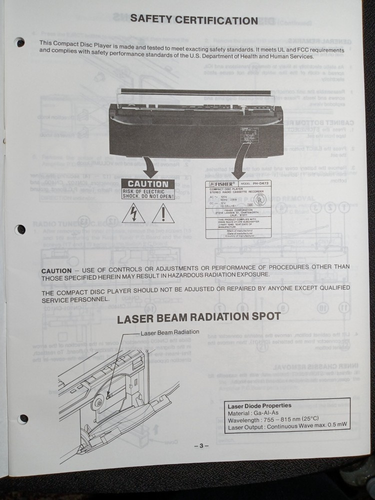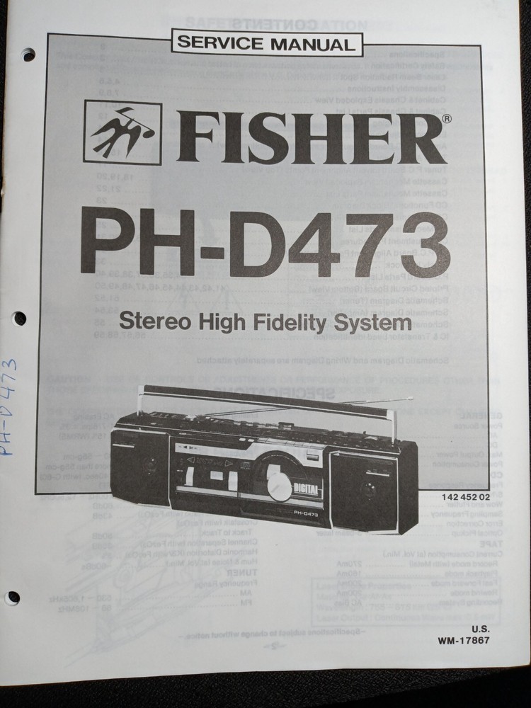 I am selling a Fisher PH-D473 Service Manual Stereo High Fidelity System Original.. Item was used at a repair center .. Item will be shipped USPS First Class or Media Mail..