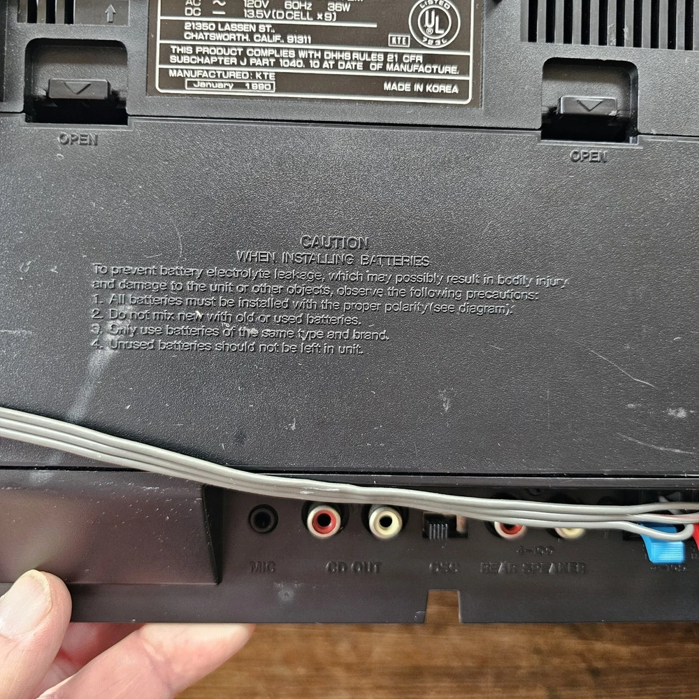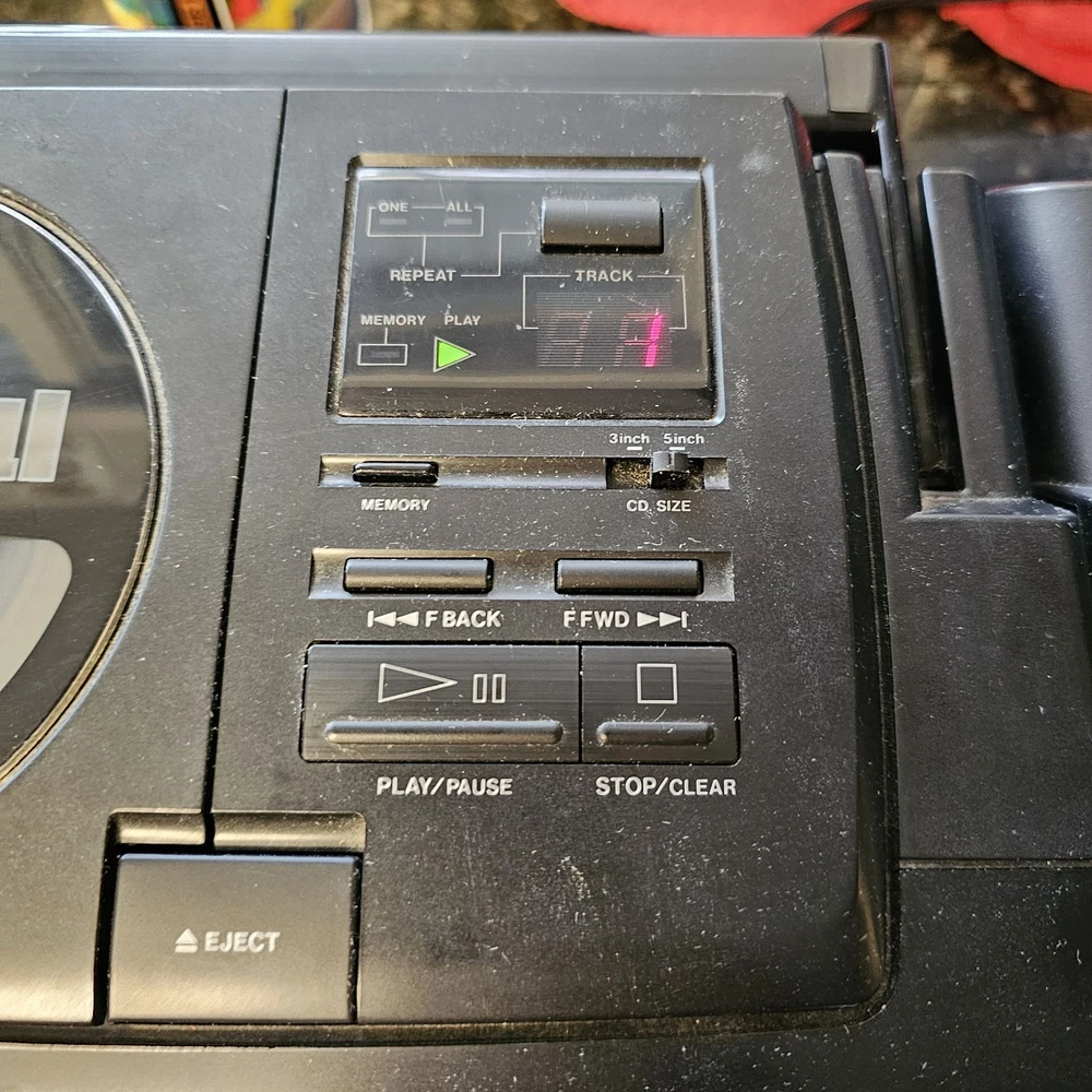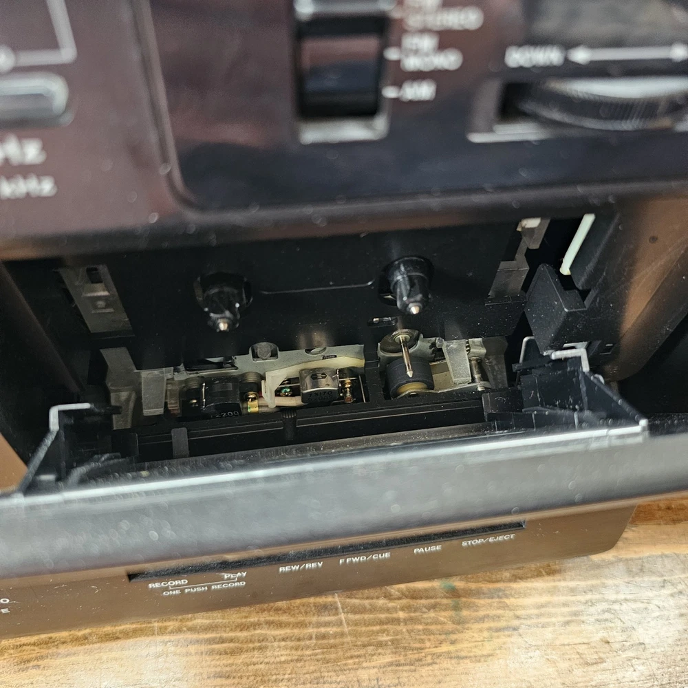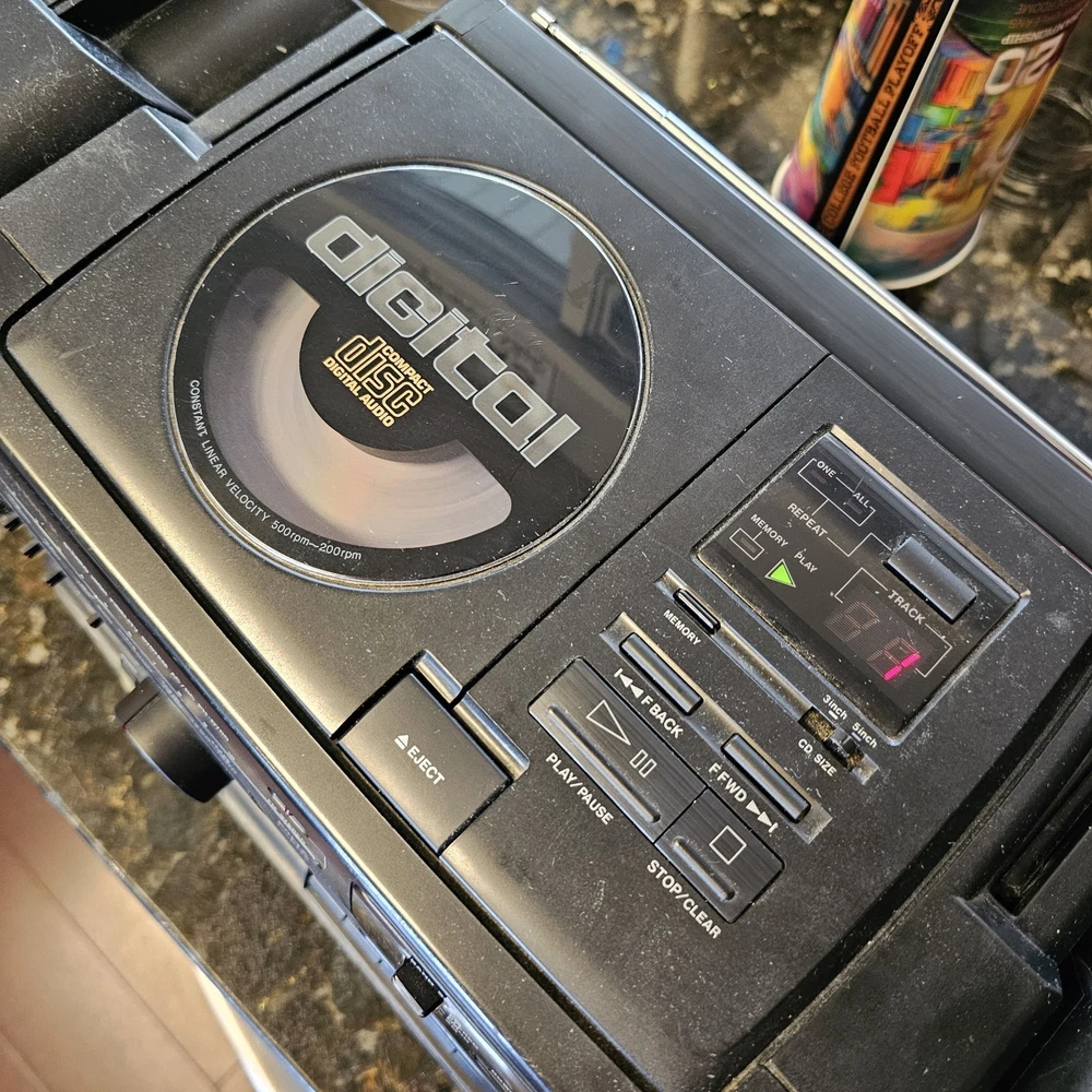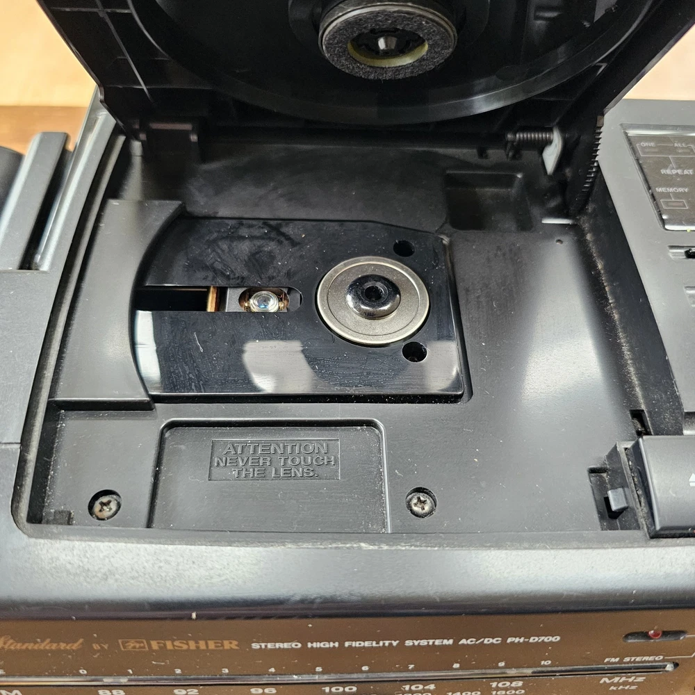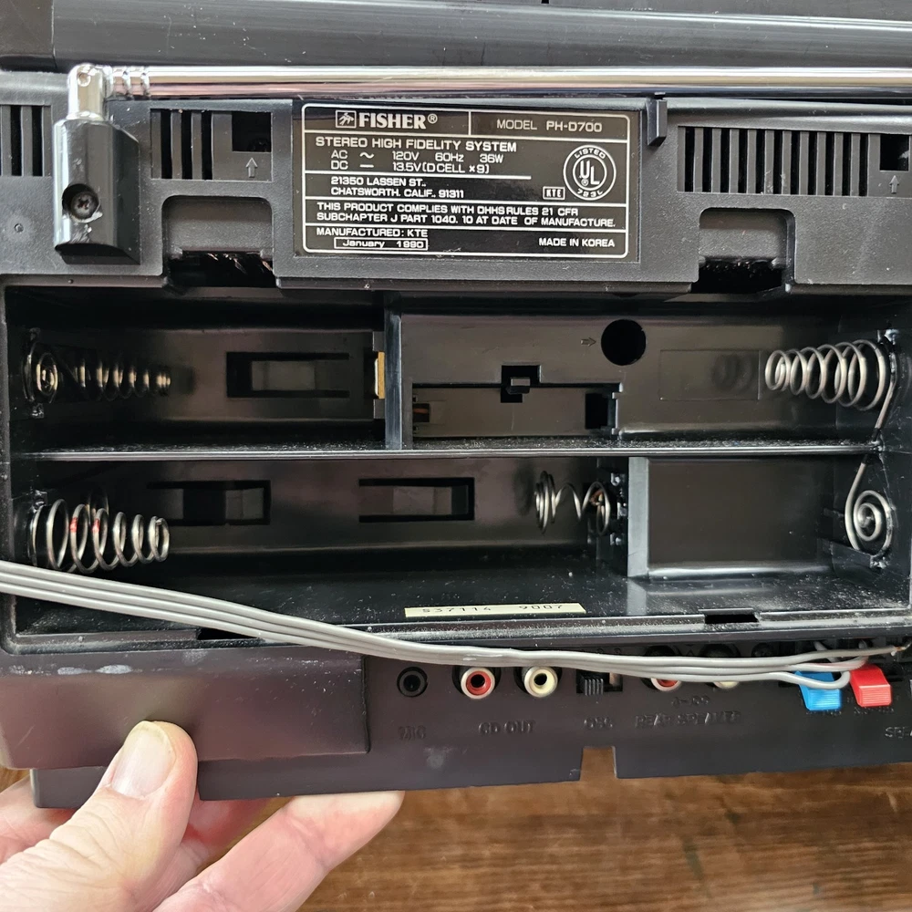 Fisher PH-D700 Boombox W/ CD AM-FM Cassette Surround Stereo Hi-Fi READ ITEM WORKS AND SOUNDS AMAZING. RADIO AND CD BOTH WORK WELL. CASSETTE PLAYER DOES PLAY BUT TAPE IS MUFFLED AND SLOW. I DONT KNOW IF I HAVE A BAD TESTING TAPE BUT I AM SELLING THIS UNIT AS THE CASSETTE PLAYER NOT PROPERLY WORKING. Sound on this is fantastic. Battery department clean. See pictures as they provide the most accurate description.
