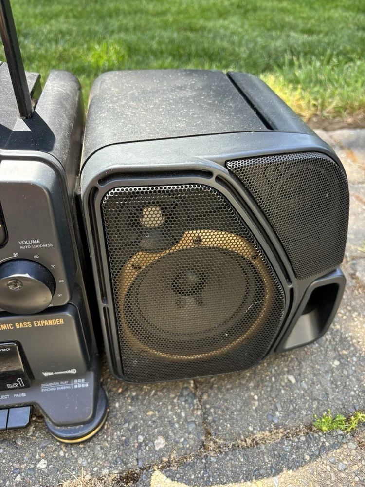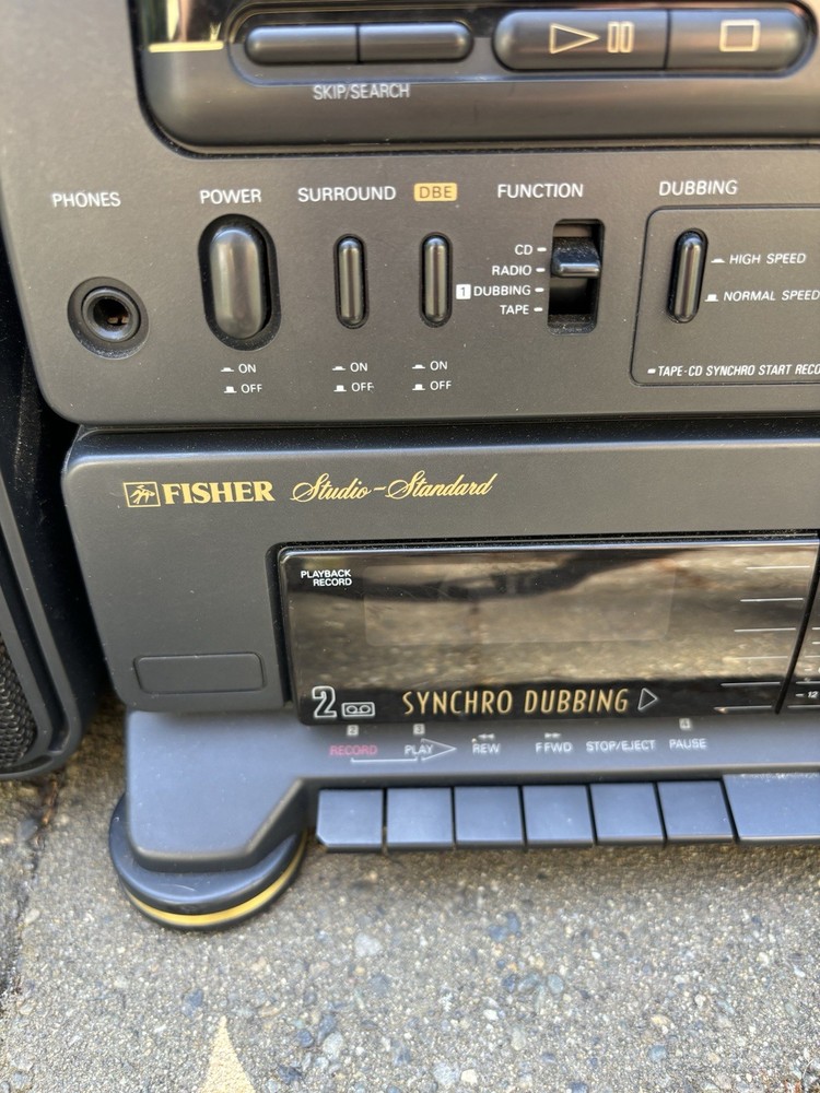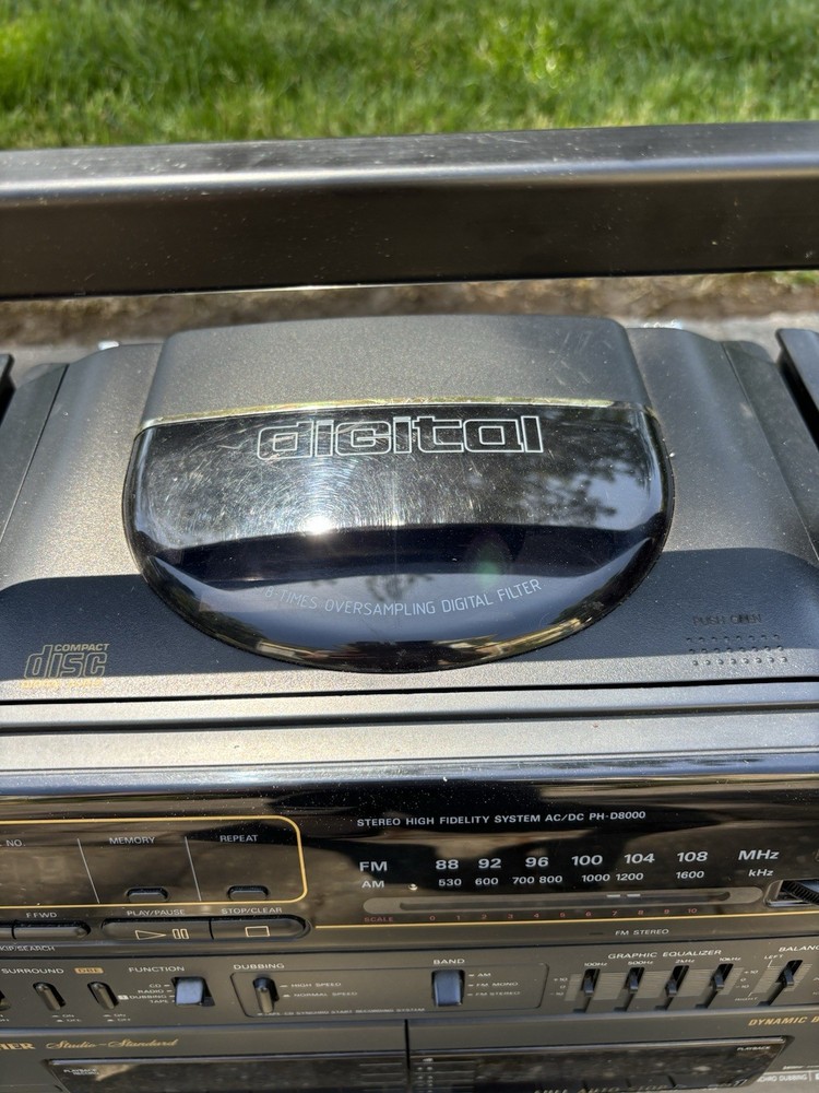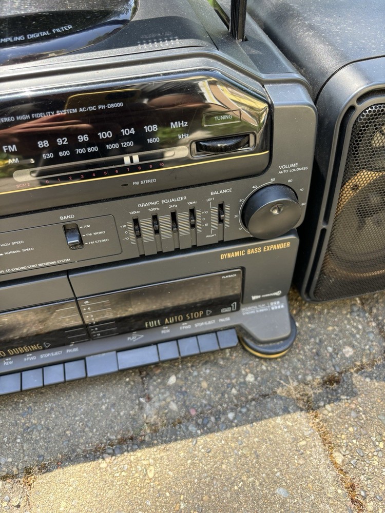 The Fisher PH-D8000 Boombox is a portable stereo system that offers a variety of playable media formats including CDs and cassette tapes. With its sleek black design and detachable speakers, this boombox provides a versatile listening experience. The built-in AM/FM radio allows for tuning into your favorite stations, while the headphone jack offers private listening. The Fisher PH-D8000 is a reliable and stylish option for enjoying music on-the-go.