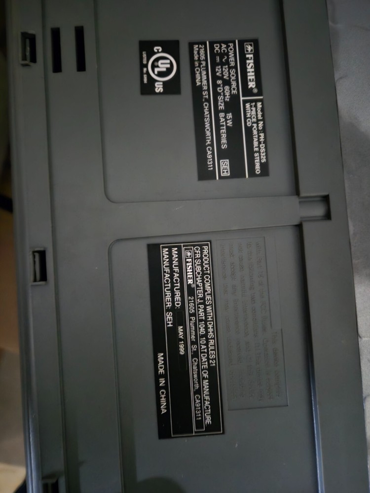 This Fisher PH-DS325 Front load CD Boombox Cassette Player is what I used many nights as a tiny child to fall asleep, listening to my favorite CD or cassette tape(though thankfully I now no longer need this to fall to sleep). It's still in great physical shape, though as far as I can tell it's not working. Not sure why, might be repairable, I don't know, I just don't have the heart to throw it away. Could make for an excellent prop! ☺ Please note I am not a business of any kind. I'm just an individual selling extra stuff I have and no longer can keep, so what you see in the photos is exactly what you will get, no surprises! If there's something you want to know about an item, feel free to message me, and I will answer as best as I can. Also! If you need something quicker, please let me know and I will ship either same day or the next day. Lastly, I prefer to not sell to business if possible. Nothing personal, I just prefer to know my stuff is going to a good home.