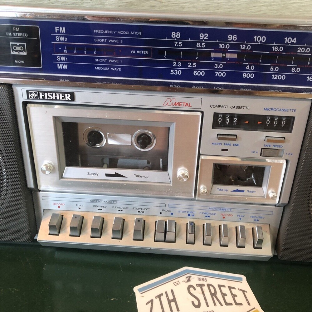 Fisher PH-M77 Vintage Boombox. Everything seems working (including both of the cassette decks) Selling it for parts or repair....