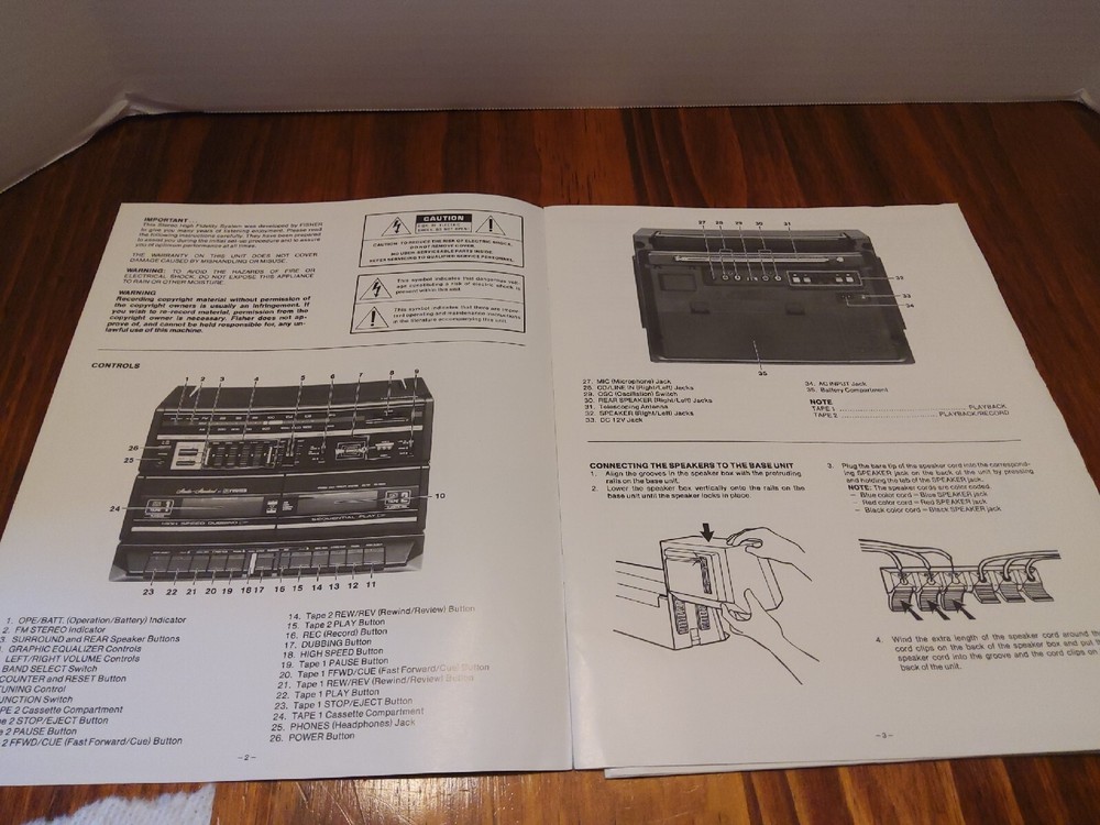 Fisher PH-W803BA Boombox, Operating Manual/Instructions. Very good condition Includes all items in pictures Cont USA Shipping only