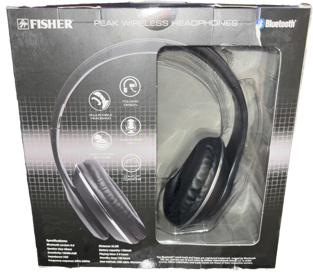 Experience high-quality audio with the Fisher Peak Wireless Headphones. These Bluetooth over-the-ear headphones feature a 40mm driver size and a double earpiece design for a comfortable and immersive listening experience. The black color and headband form factor make them stylish and easy to wear. Connect to your device wirelessly with Bluetooth technology and enjoy the convenience of a built-in microphone for hands-free calls. These headphones are compatible with any Bluetooth-enabled device and are made in the United States. With a unit quantity of three, you can share your love for music with family and friends.