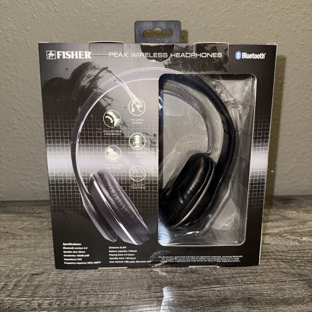 Comes in new sealed condition as shown in pictures. Please see pictures and read description before purchasing. Please don’t hesitate to message for any further questions or pictures. Experience high-quality audio with the Fisher Peak Wireless Headphones. These over-the-ear headphones feature a 40mm driver size and Bluetooth connectivity for easy and convenient listening on-the-go. The black color and headband form factor make for a stylish and comfortable fit, while the built-in microphone allows for easy communication. With compatibility for universal Bluetooth devices, you can easily connect to your favorite devices and enjoy your favorite tunes without any cords or wires. The wireless feature allows for more freedom and movement, while the double earpiece design provides a immersive audio experience. Made in the United States, these headphones are a great addition to any music lover's collection.